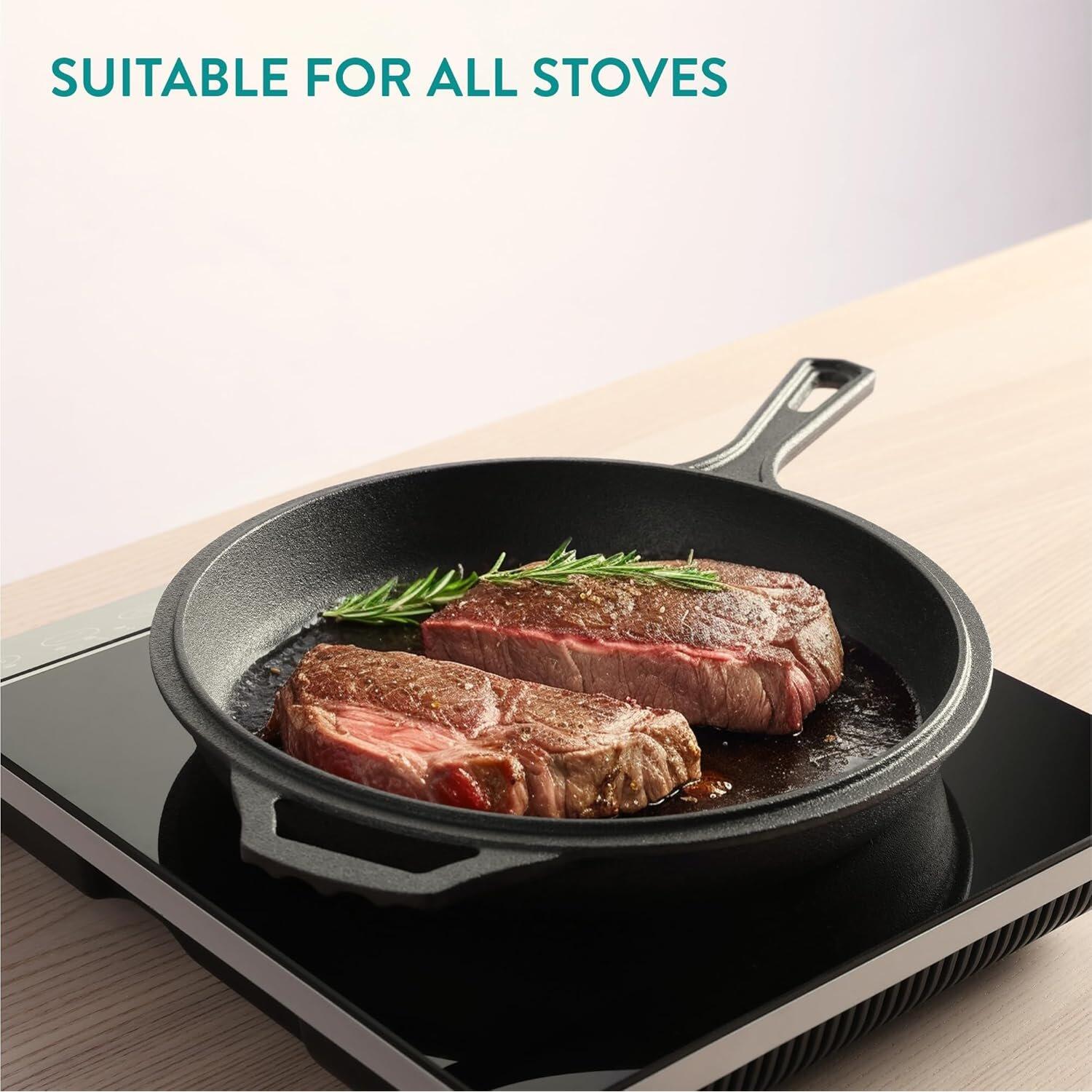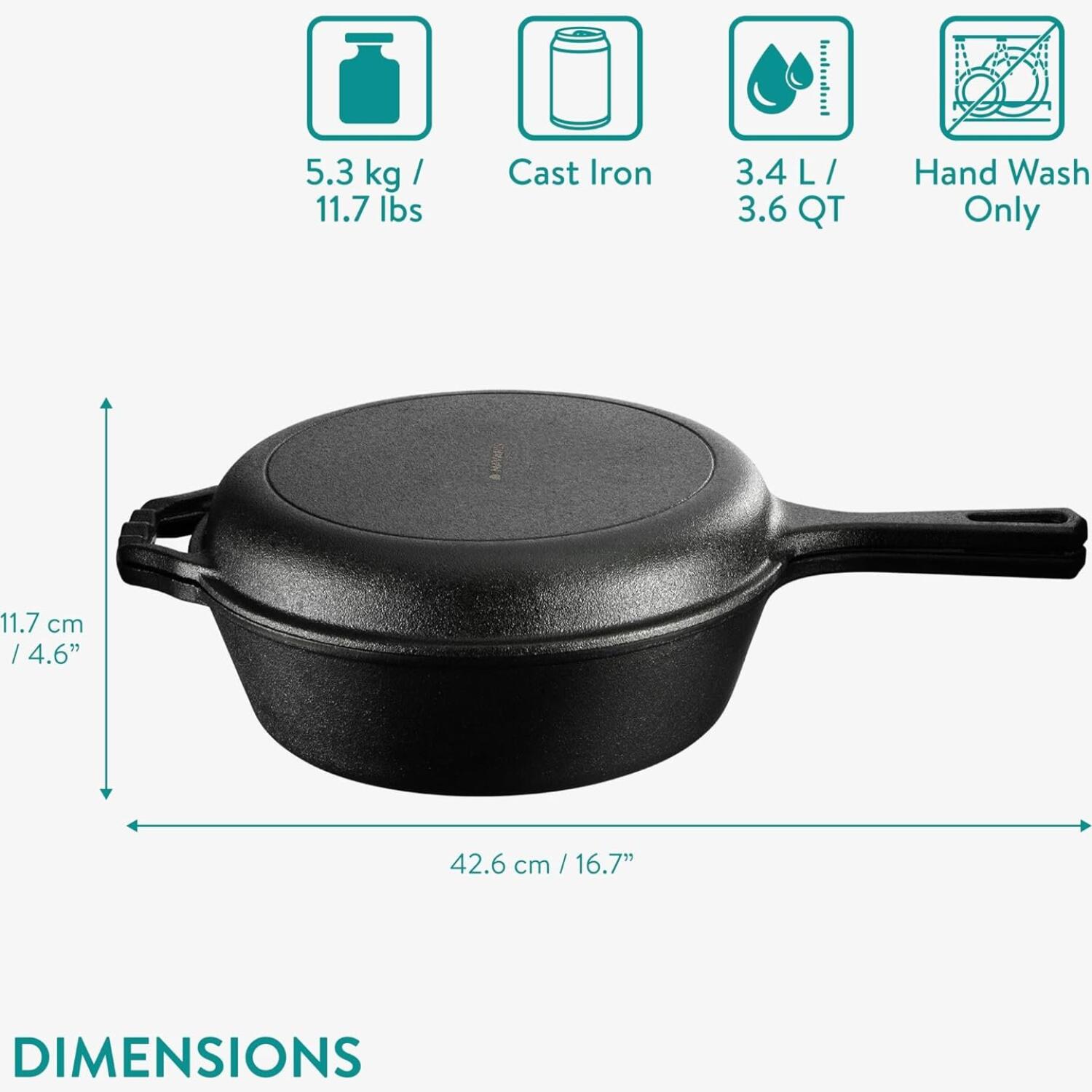 Ιδανικό για κρέας με πατάτες, μπριζόλες, αυγά, πίτες, μαγειρευτά, ψωμί και πολλά άλλα, αυτή η κατσαρόλα προσφέρει εξαιρετική συγκράτηση και ομοιόμορφη κατανομή της θερμότητας, διασφαλίζοντας άριστα αποτελέσματα κάθε φορά. Είναι επίσης το τέλειο δώρο για τους λάτρεις της μαγειρικής, αρχάριους ή επαγγελματίες. Μπορείτε να ετοιμάσετε διάφορα μαγειρευτά πιάτα ή, να χρησιμοποιήσετε το καπάκι ως τηγάνι για να ετοιμάσετε νόστιμες, λαχταριστές δημιουργίες!