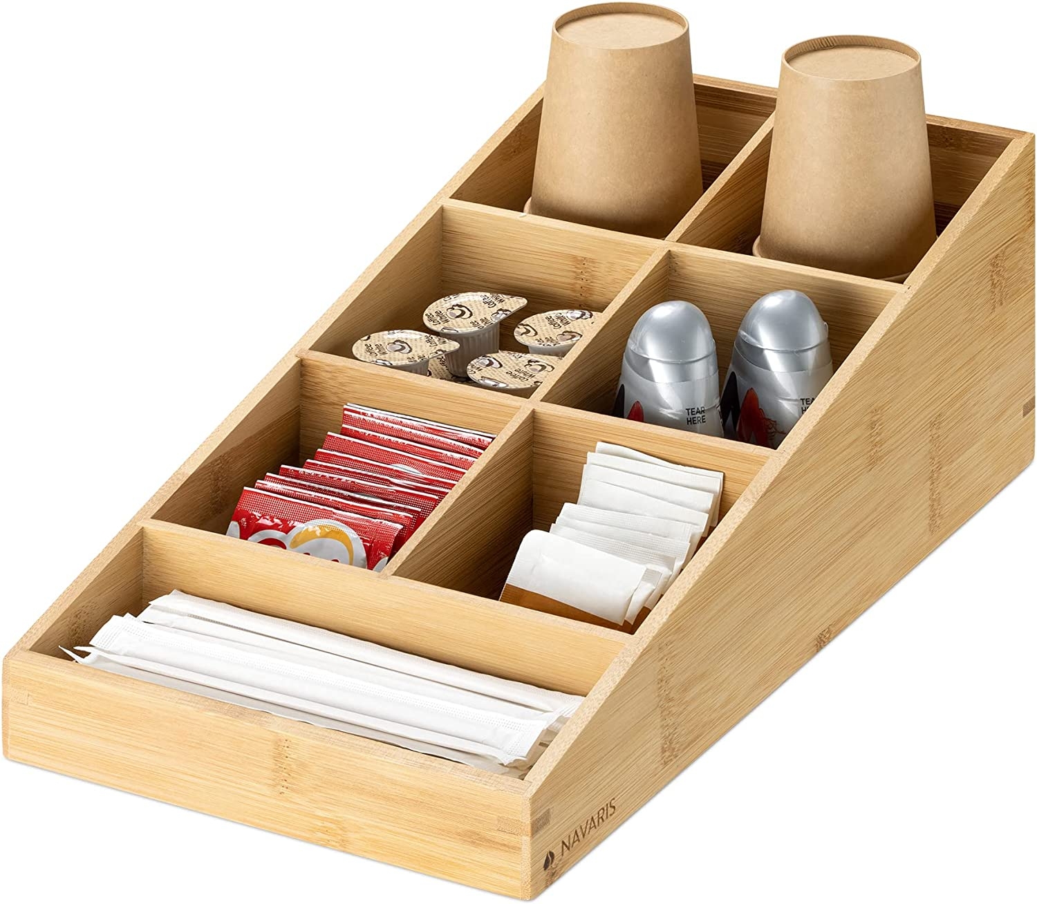 Θέλετε φρέσκο καφέ με το πρωινό σας; Με τη βοήθεια αυτού του αξεσουάρ από μπαμπού της Navaris, εξοικονομείτε πολύ χρόνο αναζητώντας τα σωστά αντικείμενα. Υπάρχουν θέσεις για ζάχαρη, κύπελλα καφέ, αναδευτήρες, κάψουλες και όλα αυτά σε ένα μέρος.