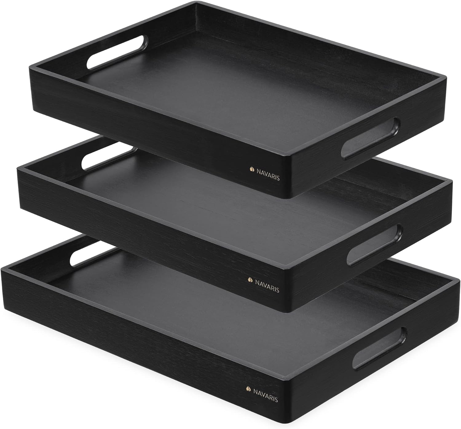 Navaris Bamboo Serving Trays - Σετ με 3 Δίσκους Σερβιρίσματος από Μπαμπού με Λαβές - Black (53446.03.01)