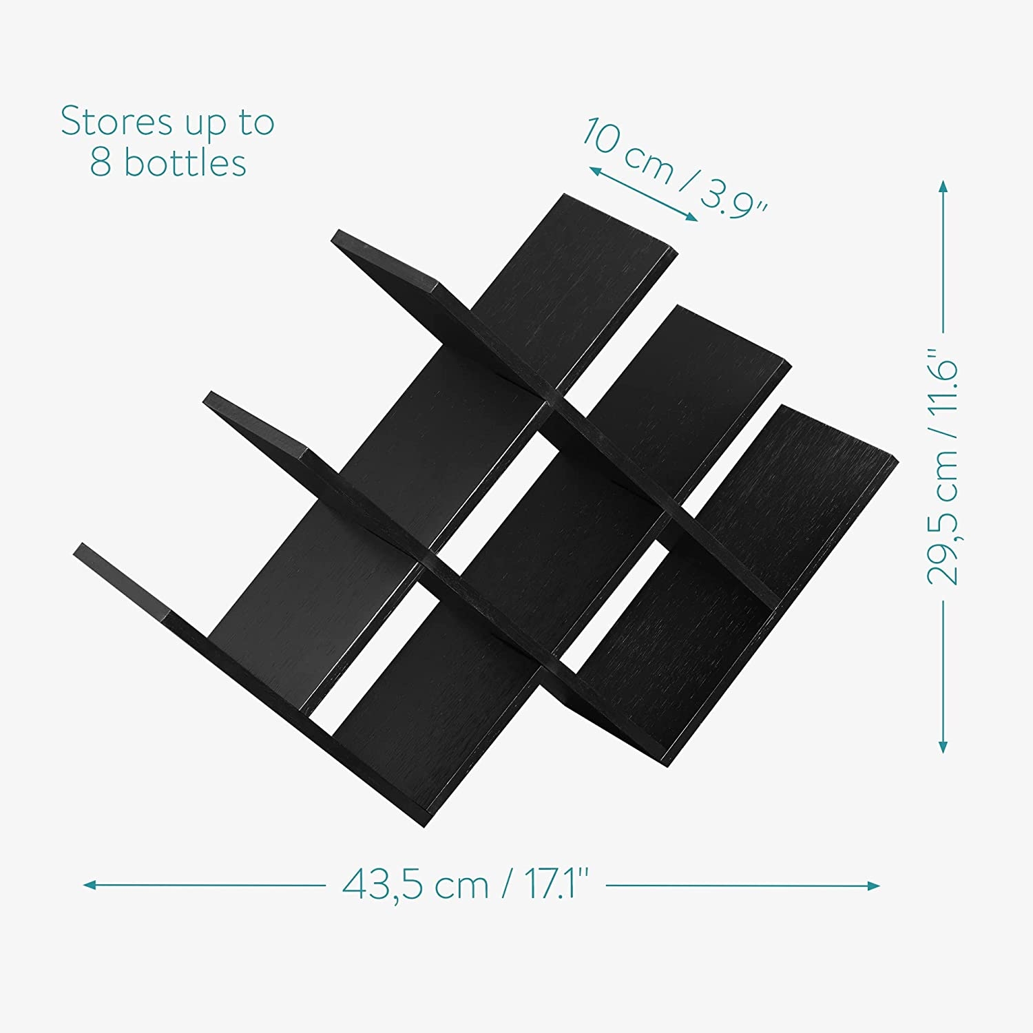 Χάρη στην οριζόντια τοποθέτηση, οι φελλοί των μπουκαλιών κρασιού σας δεν μπορούν να στεγνώσουν. Με τη βοήθεια των 8 βιδών, το ράφι συναρμολογείται εύκολα. Η βάση όχι μόνο παρέχει έναν πρακτικό χώρο αποθήκευσης για τα μπουκάλια σας, αλλά είναι επίσης όμορφη και ιδανική για κάθε διακόσμηση!