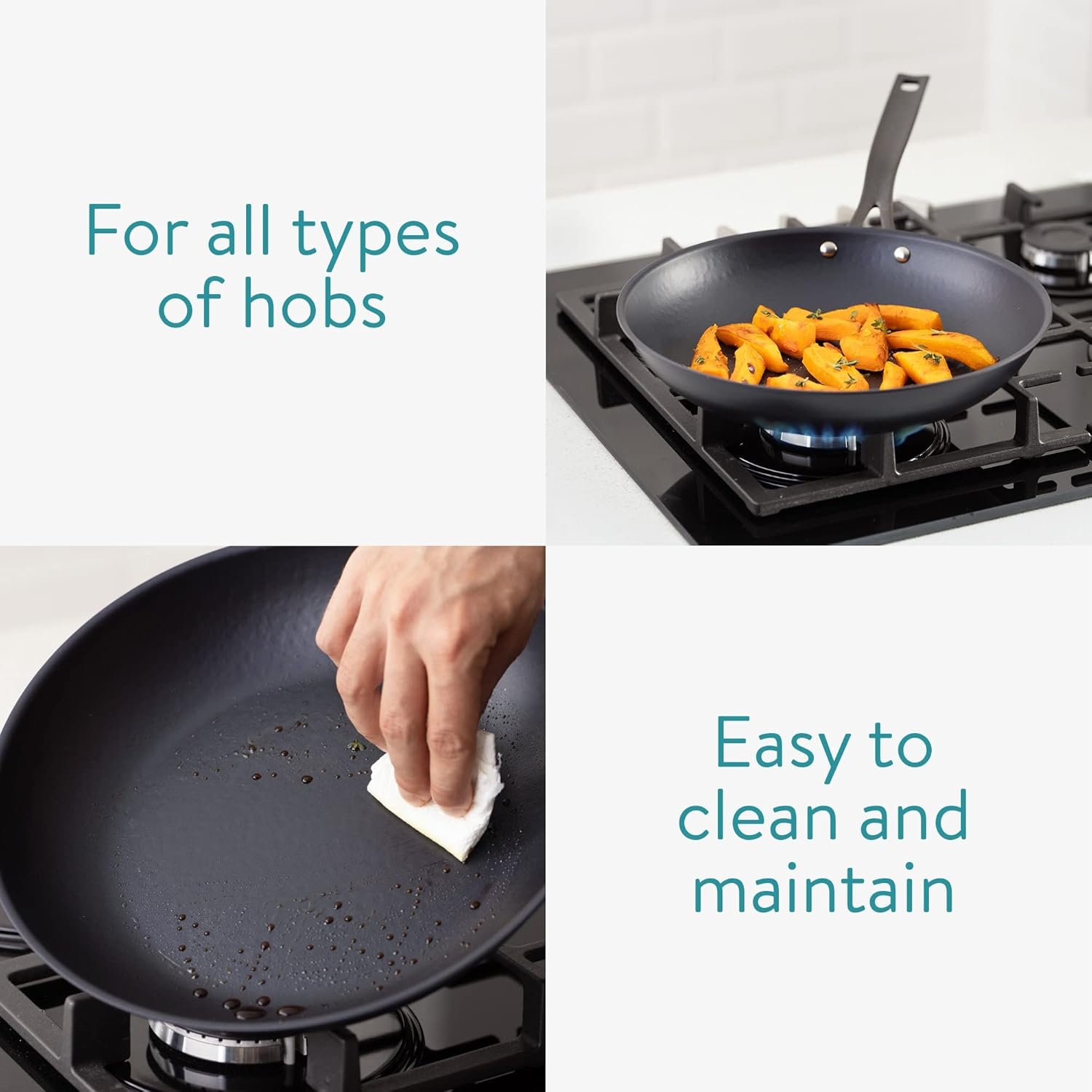 Αυτό το μοναδικό τηγάνι συνδυάζει το ανθρακούχο ατσάλι για την εξαιρετική θερμική απόδοση, το χυτοσίδηρο για τη σταθερότητα, και το ανοξείδωτο ατσάλι για την ανθεκτικότητα. Σας επιτρέπει το μαγείρεμα με ελάχιστο λάδι, είναι κατάλληλο για όλους τους τύπους εστιών και είναι ανθεκτικό στον φούρνο έως και τους 200°C.