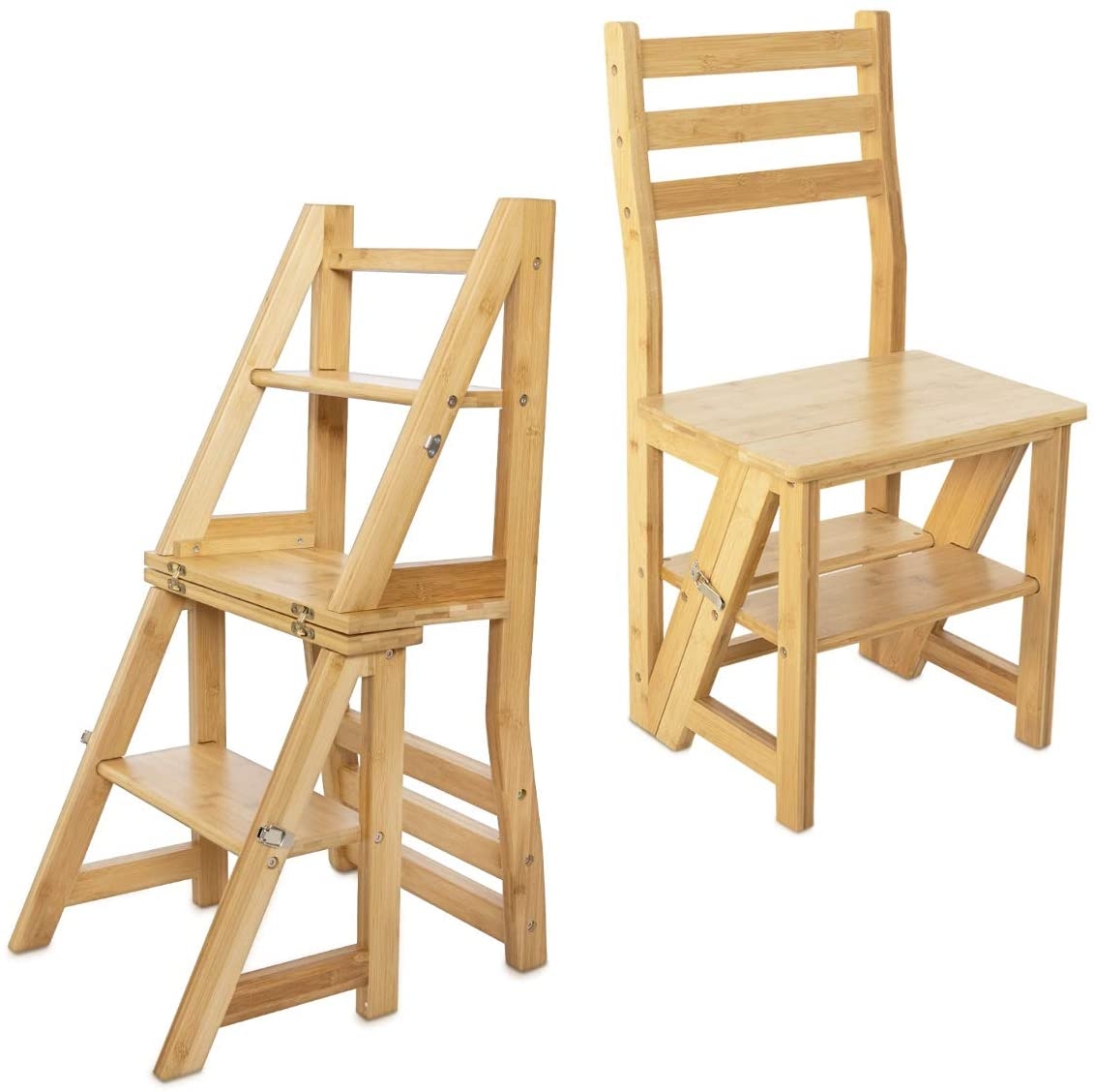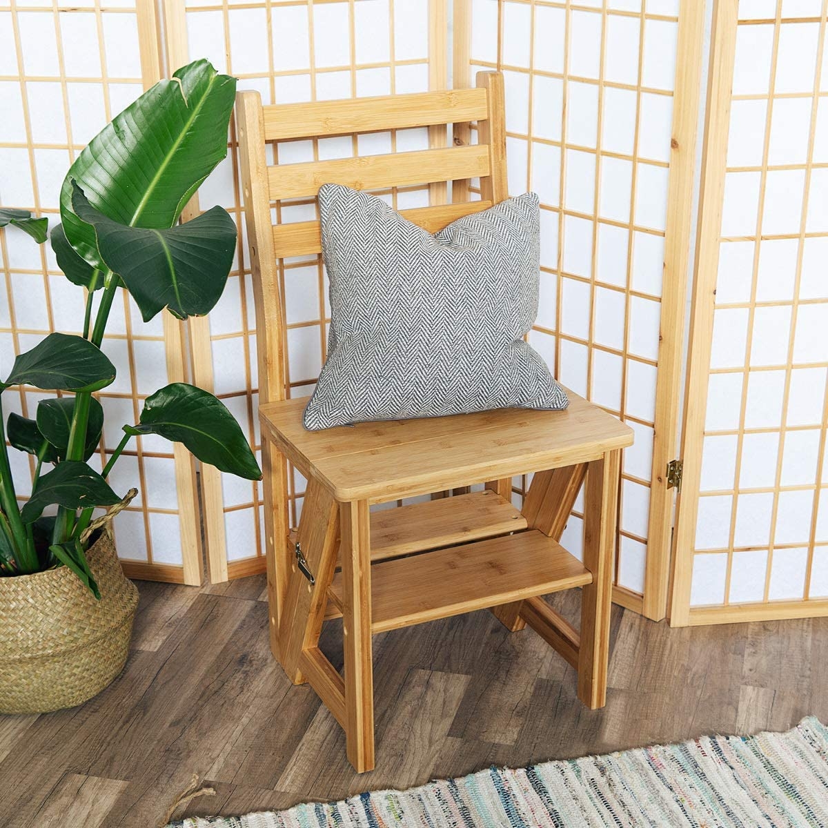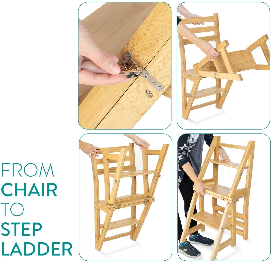 Ανεξάρτητα από τον τύπο χρήσης που θα επιλέξετε, το μπαμπού κάνει την πτυσσόμενη καρέκλα πραγματικά εντυπωσιακή και προσθέτει μία δροσερή νότα στον χώρο σας. Εάν θέλετε να μετατρέψετε την πτυσσόμενη καρέκλα σε σκάλα, απλά χαλαρώστε τη γρήγορη απελευθέρωση και διπλώστε την πλάτη!