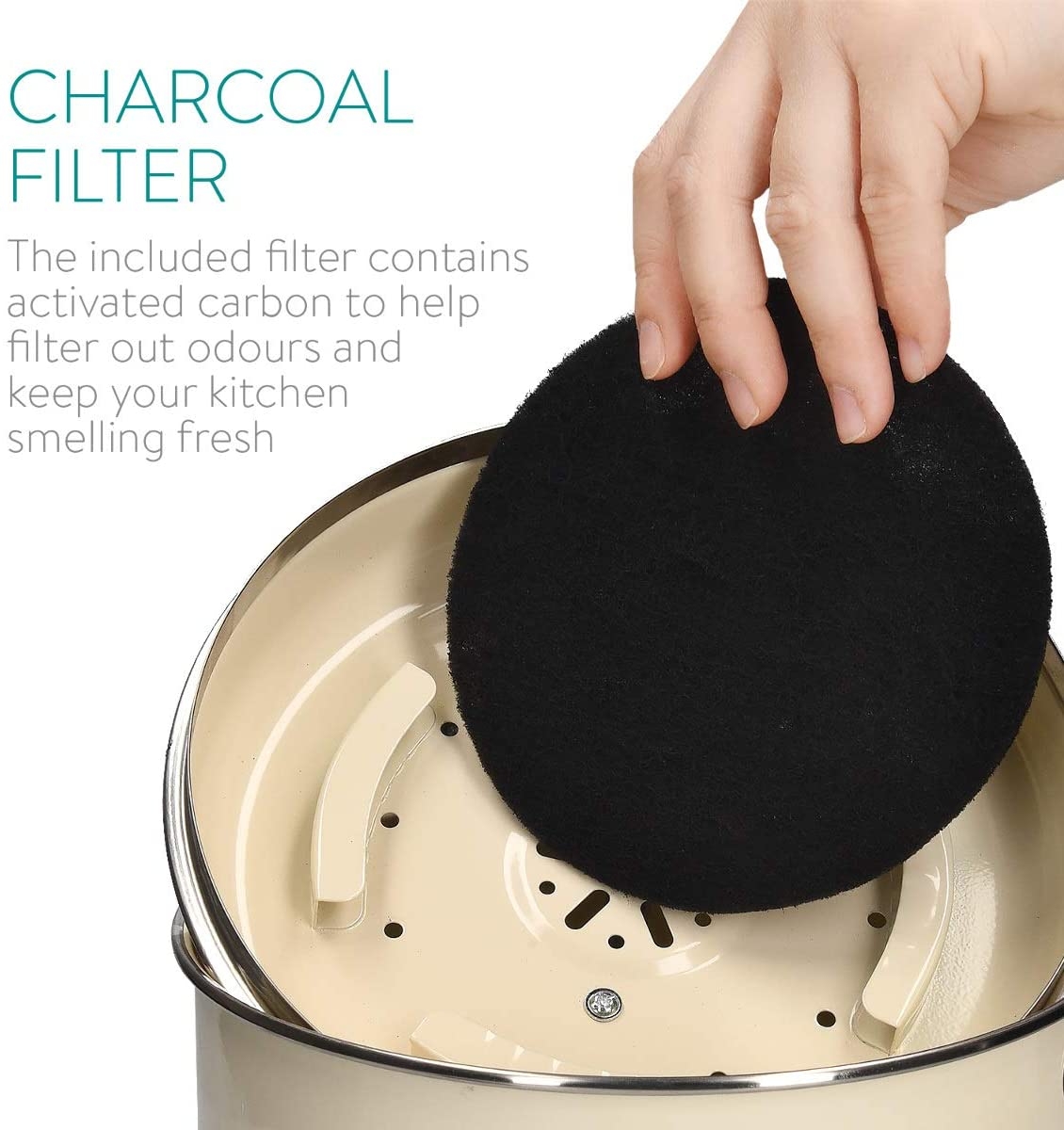 Το συμπεριλαμβανόμενο φίλτρο ενεργού άνθρακα στο καπάκι, φιλτράρει τις οσμές για να διατηρεί την κουζίνα σας καθαρή και φρέσκια. Μπορείτε να απορρίψετε οργανικά είδη όπως: τα κελύφη αυγών, φακελάκια τσαγιού, φλοιούς πατάτας και μπανάνας ή χαλασμένα τρόφιμα στον οργανικό κάδο. Το φίλτρο σας προστατεύει από δυσάρεστες οσμές.