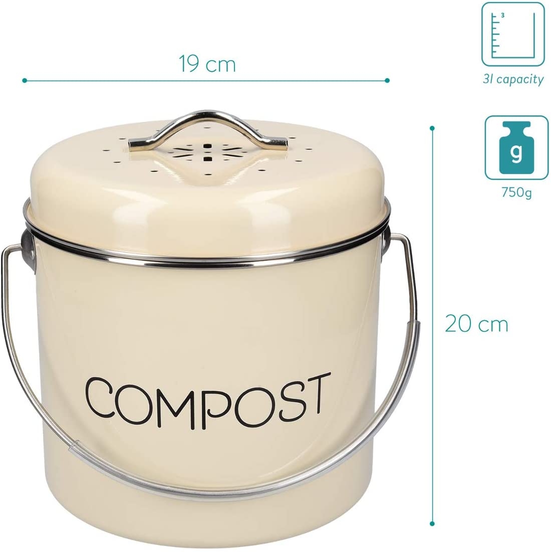 Μπορεί να αποθηκευτεί είτε στην επιφάνεια εργασίας είτε κάτω από το νεροχύτη. Διαθέτοντας μια ανθεκτική λαβή μεταφοράς για ασφαλή μεταφορά, ο κάδος κομποστοποίησης είναι πρακτικός για χρήση και μετακίνηση. Με νοσταλγική εμφάνιση, σίγουρα θα συμπληρώσει την υπάρχουσα διακόσμηση και τα αξεσουάρ της κουζίνας σας.