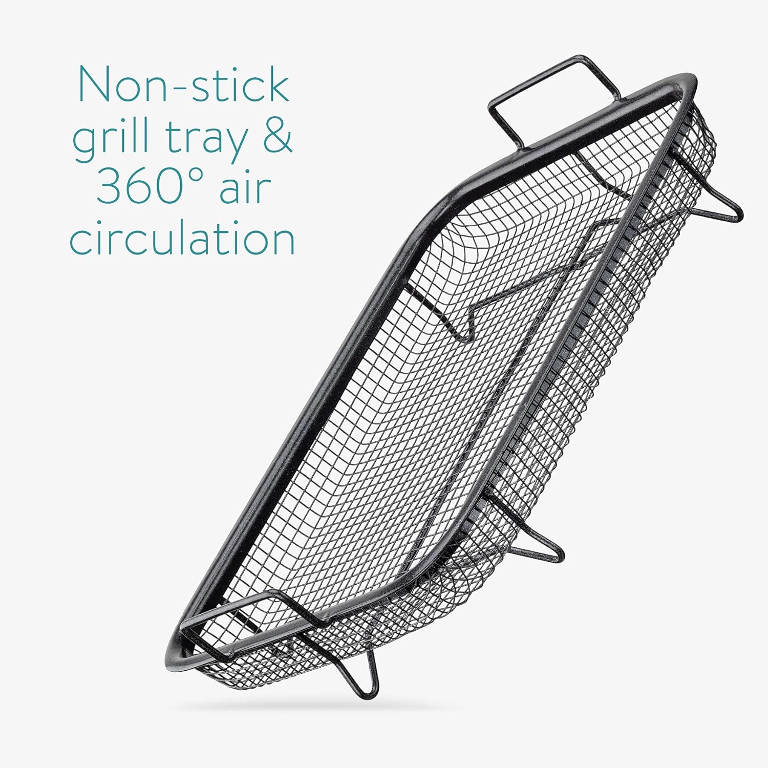 Μειώστε την ποσότητα του λαδιού από την καθημερινότητά σας και επιτύχετε τραγανές λιχουδιές, χωρίς να στερηθείτε την απόλαυση με το Oven Air Fry Grill Tray της Navaris! Είναι κατασκευασμένο από ανθεκτικό ανοξείδωτο ατσάλι με αντικολλητική επίστρωση και έτσι είναι ιδανικό για υγιεινό μαγείρεμα.