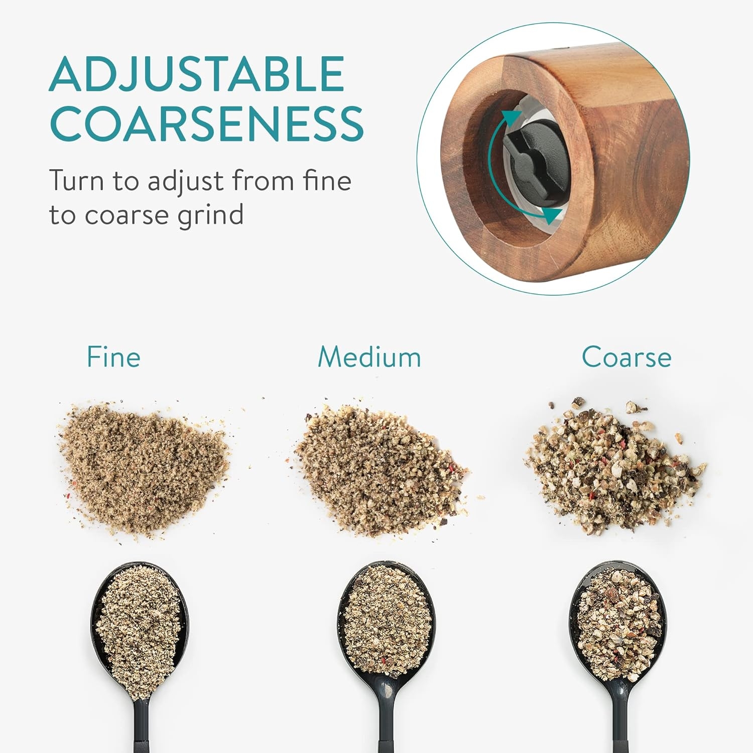 Αυτό το σετ είναι απαραίτητο για κάθε κουζίνα, εστιατόριο, μπάρμπεκιου ή πικνίκ. Αποτελείται από ένα κομψό ξύλινο σχέδιο κατάλληλο για κάθε χρήση στην κουζίνα ή στο τραπέζι. Γυρίστε την πλαστική βίδα στο κάτω μέρος του μύλου και ρυθμίστε το πάχος που θέλετε να αλέσετε σε λεπτό, μεσαίο και χοντρό.