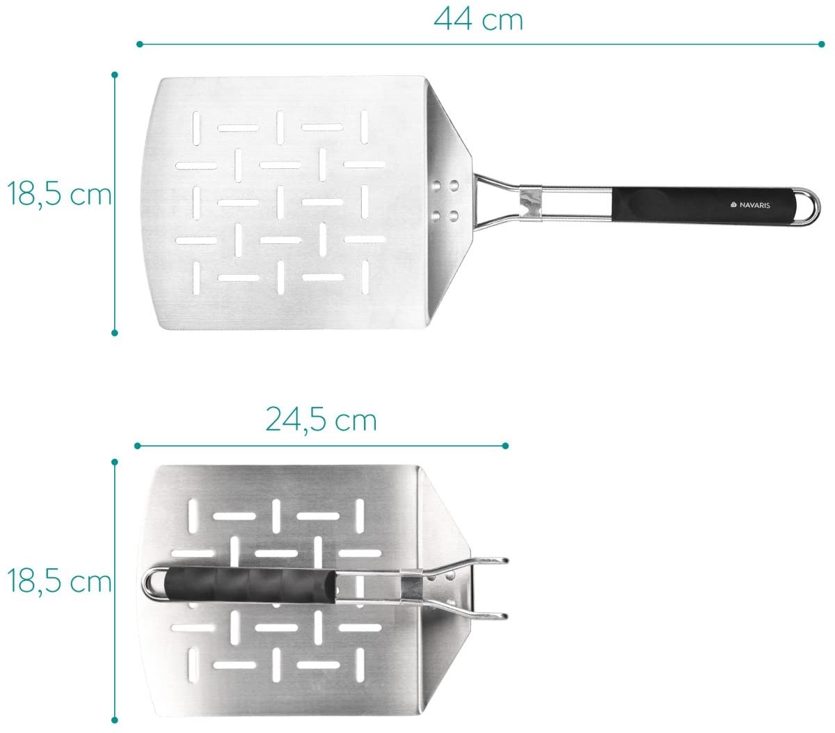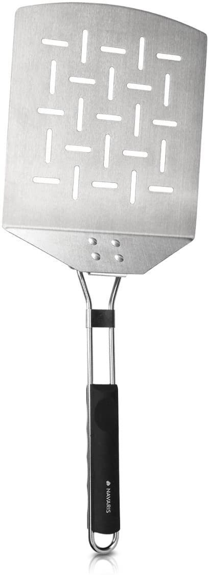 Με την αναδιπλούμενη σπάτουλα πίτσας από τη Navaris μπορείτε να μεταφέρετε άνετα πίτσα, ψωμί, τάρτα και άλλα ψημένα φαγητά στο πιάτο σας και να απολαύσετε το επόμενο γεύμα σας με σιγουριά. Ιδανικό για βραδιές με φίλους ή οικογένεια!