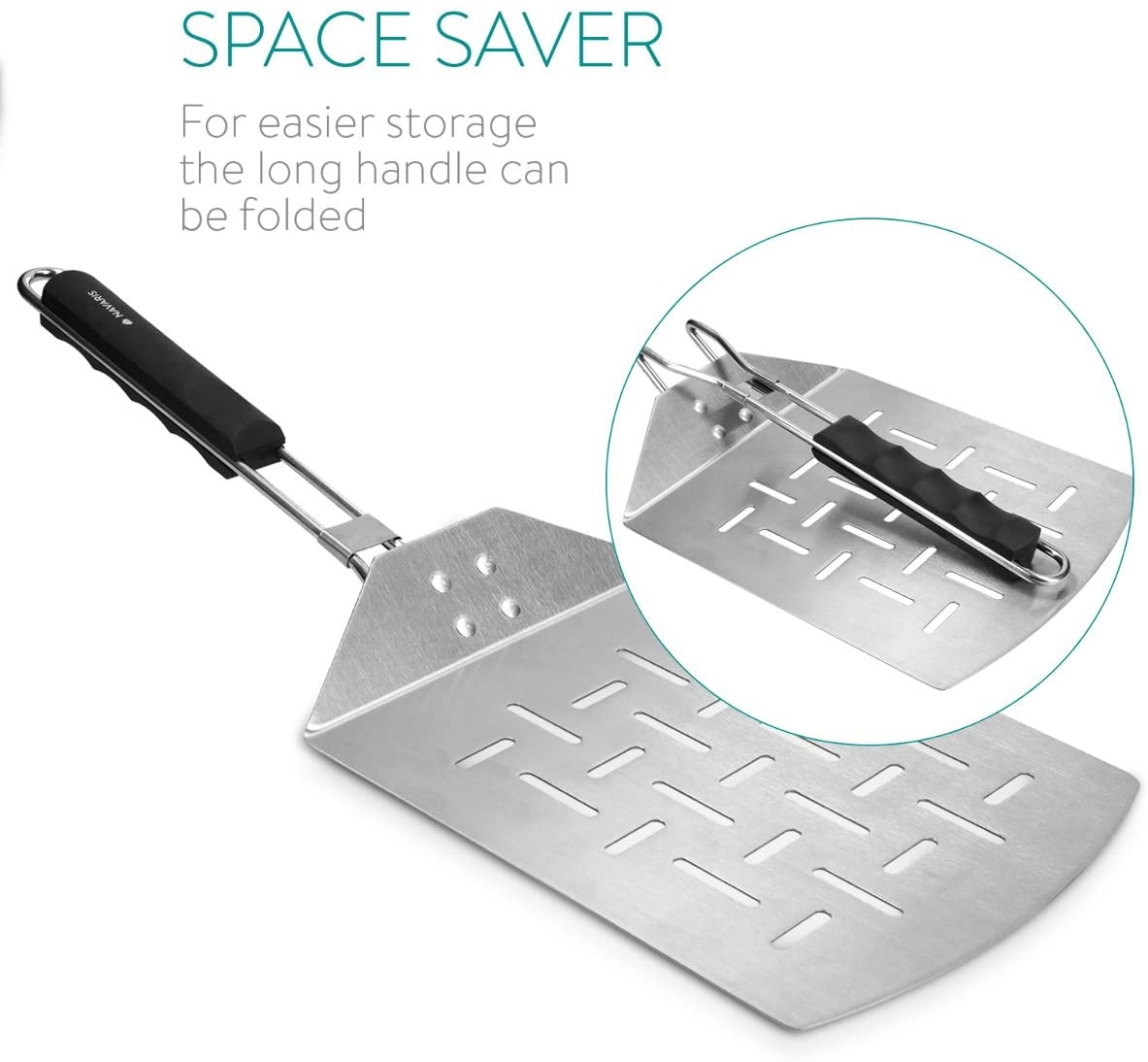 Αυτό το επαγγελματικό εργαλείο κουζίνας αποθηκεύεται τέλεια λόγω της αναδιπλούμενης λαβής. Μπορεί να κρεμαστεί για εύκολη πρόσβαση ή να διπλωθεί για να χωρέσει σε ένα συρτάρι.