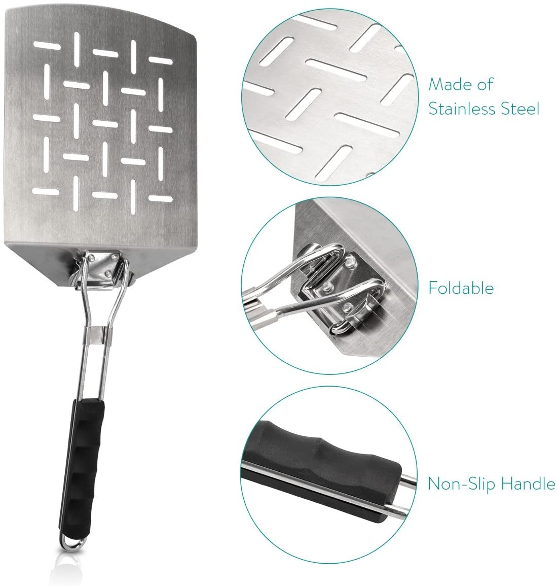 Σε αντίθεση με τις ξύλινες λαβές, το ανοξείδωτο ατσάλι δεν θα παγιδεύει οσμές και είναι ασφαλές στο πλυντήριο πιάτων. Η διάτρητη κατασκευή του επιτρέπει στο πλεονάζον αλεύρι να πέσει από την πίτσα.