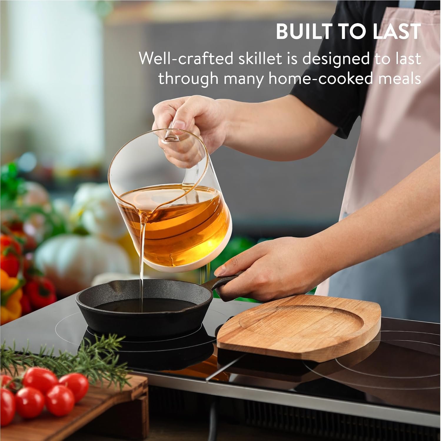 Η φυσική ξύλινη βάση από σημύδα που συνοδεύει το τηγάνι, προστατεύει τις επιφάνειες του τραπεζιού και προσδίδει μια ρουστίκ, κομψή αισθητική στην κουζίνα σας. Είναι επίσης το τέλειο δώρο για τους λάτρεις της μαγειρικής, αρχάριους ή επαγγελματίες. Η ανθεκτικότητα του χυτοσιδήρου σημαίνει ότι το τηγάνι μπορεί να αντέξει τις υψηλές θερμοκρασίες.