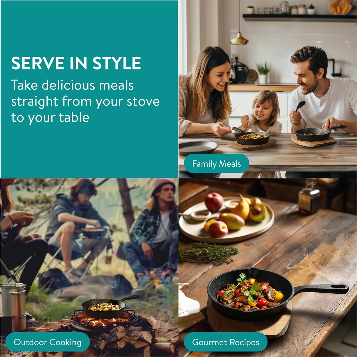 Ανακαλύψτε την τέχνη του μαγειρέματος με τα τηγάνια από χυτοσίδηρο της Navaris, ένα εξαιρετικό gadget κουζίνας και διαμάντι για κάθε κουζίνα! Ιδανικό για κρέας με πατάτες, μπριζόλες, αυγά, πίτες, μαγειρευτά και πολλά άλλα, αυτό το τηγάνι προσφέρει εξαιρετική συγκράτηση και ομοιόμορφη κατανομή της θερμότητας, διασφαλίζοντας άριστα αποτελέσματα κάθε φορά.