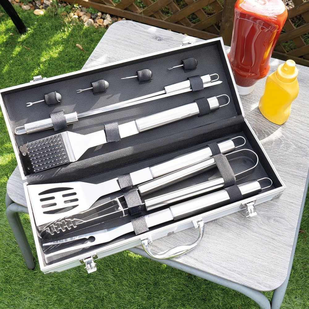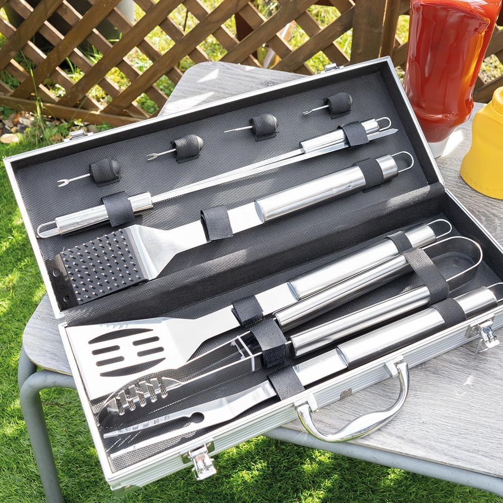 The Source InGenious BBQ Tool Set - Σετ με 10 Εργαλεία BBQ Μπάρμπεκιου από Ανοξείδωτο Ατσάλι σε Θήκη Μεταφοράς από Αλουμίνιο (5056327916819)