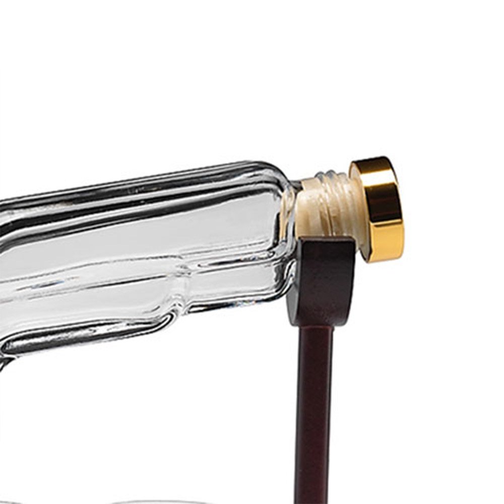 Η καράφα σε σχήμα όπλου και τα ασορτί ποτήρια με σχεδιασμό bullet είναι κατασκευασμένα από υψηλής ποιότητας βοριοπυριτικό γυαλί, το οποίο είναι ασφαλές και απαλλαγμένο από μόλυβδο. Η ανθεκτικότητα του σας προσφέρει καθαρή γεύση και αντοχή στην μακροχρόνια χρήση. Η ξύλινη βάση προσφέρει σταθερότητα, αλλά αποτελεί και ένα διακοσμητικό στοιχείο υψηλής αισθητικής.