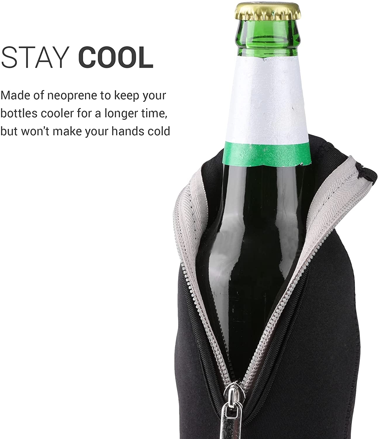 Χάρη στη χρήση εύκαμπτου, ελαστικού και ανθεκτικού νεοπρενίου, η θήκη ταιριάζει τέλεια στο ποτό ή αναψυκτικό σας καθώς έχει χωρητικότητα 330ml - 500ml, όπως τα περισσότερα μπουκάλια μπύρας ή αναψυκτικών. Τέλος, σας προσφέρει ελεύθερη πρόσβαση στο άνοιγμα της μπύρας η αναψυκτικού.