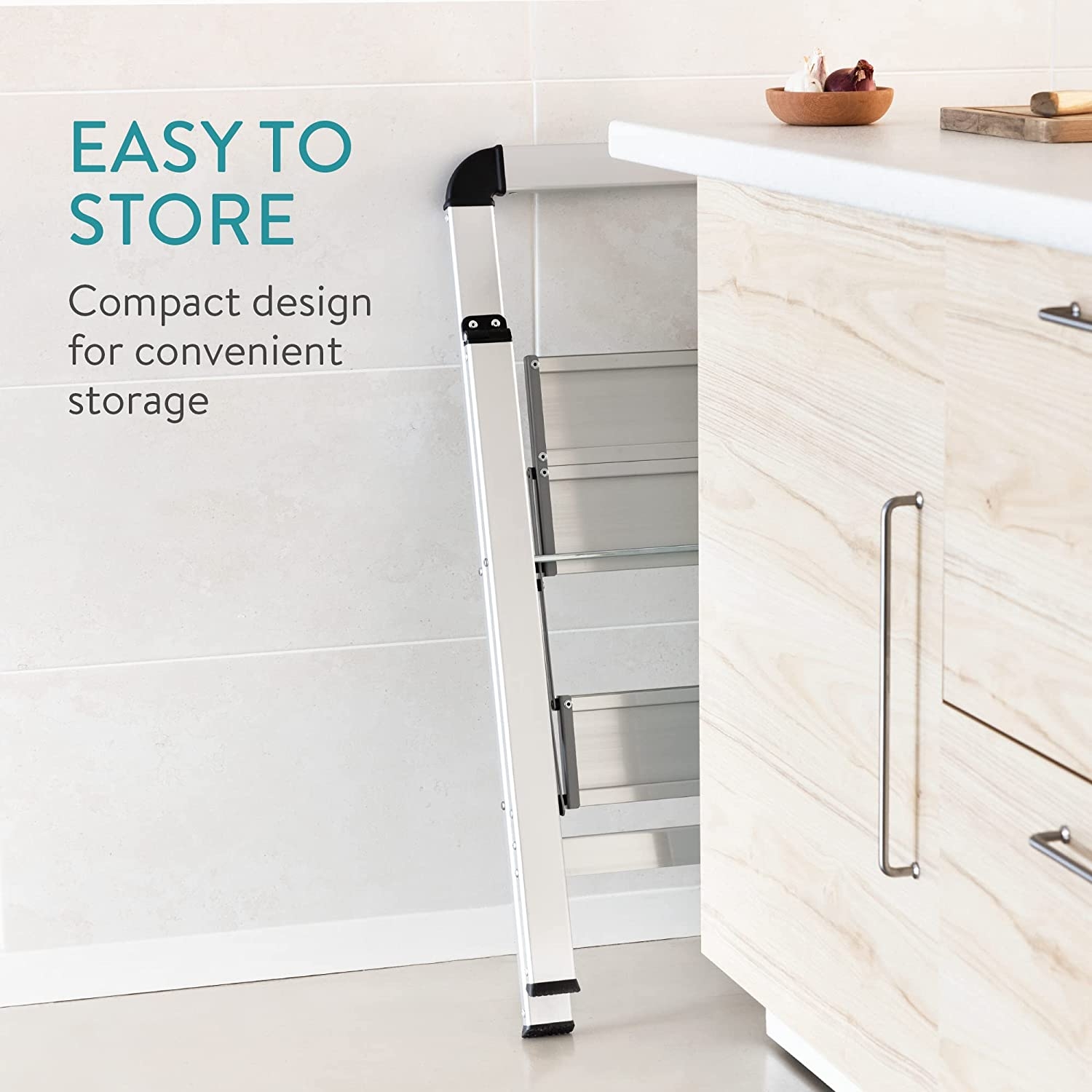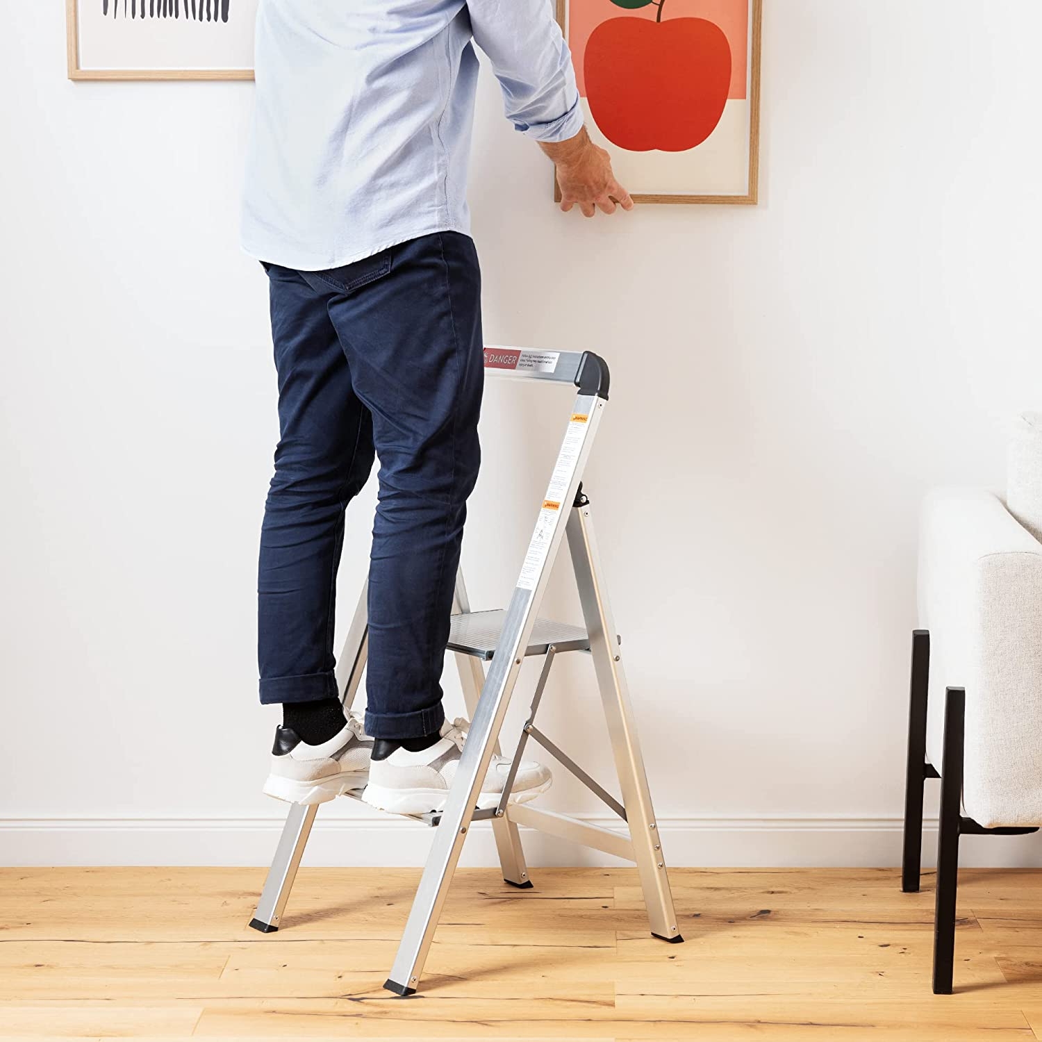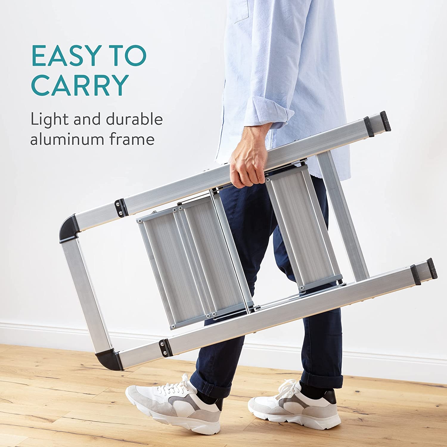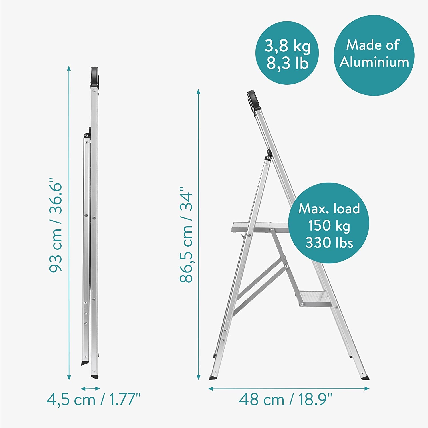 Η σκάλα της Navaris είναι κατασκευασμένη από συμπαγές αλουμίνιο, διαθέτει δύο σκαλοπάτια και θα σας εντυπωσιάσει με την ανθεκτική και στιβαρή της εμφάνιση! Ταυτόχρονα, το αλουμίνιο είναι ιδιαίτερα ελαφρύ και η σκάλα ζυγίζει μόλις 3.76 κιλά, γεγονός που διευκολύνει τη μεταφορά της.