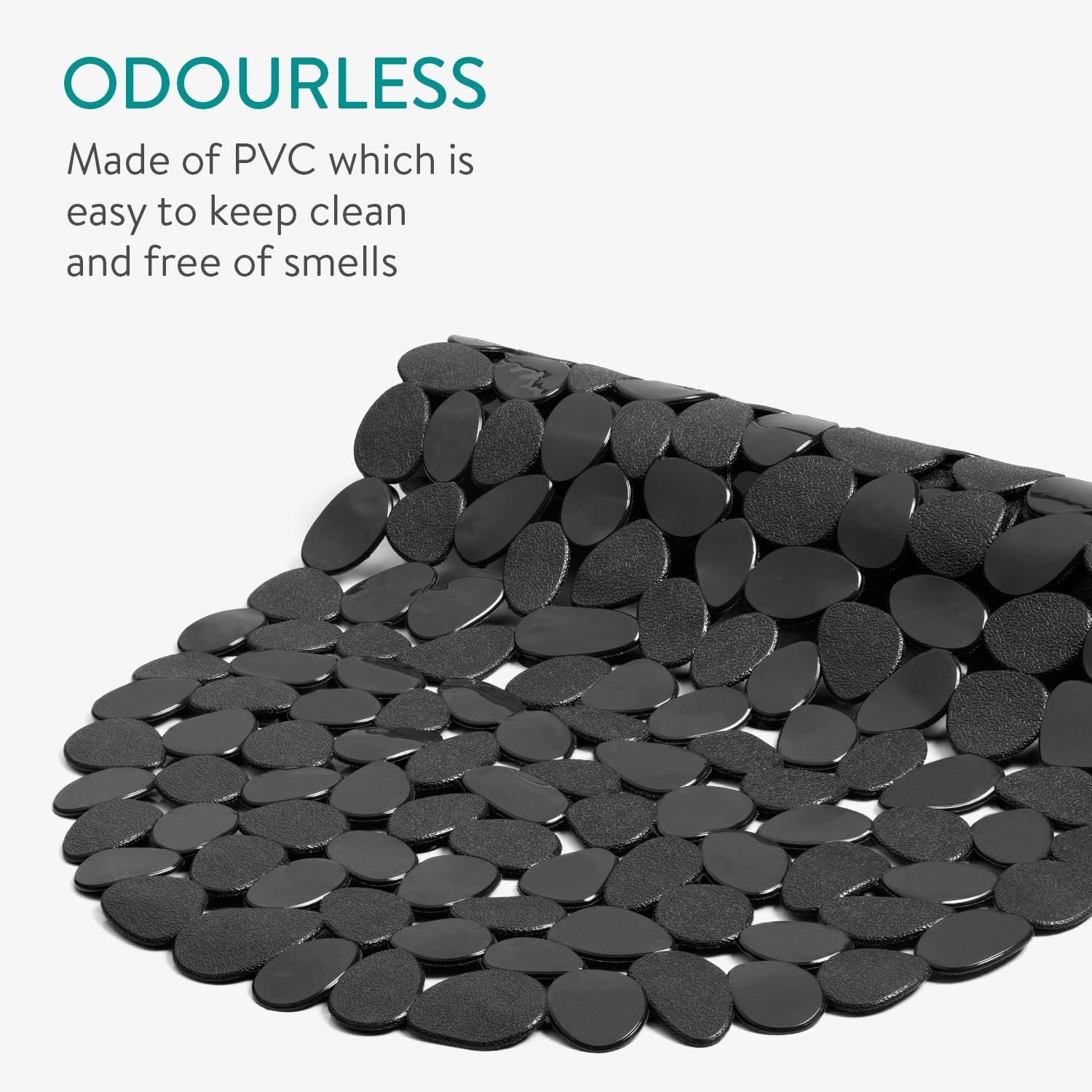 Αυτές οι ισχυρές βεντούζες παρέχουν σταθερό κράτημα, χάρη στον μοναδικό σχεδιασμό, ενώ το υλικό PVC αντιστέκεται στις οσμές και καθαρίζεται εύκολα, το πατάκι είναι επίσης μαλακό και εύκαμπτο, ενώ καλύπτει ολόκληρη την επιφάνεια της μπανιέρας σας, χάρη στις διαστάσεις 99 x 39 cm. Επίσης, οι ειδικές τρύπες που διαθέτει στραγγίζουν και απομακρύνουν το νερό εύκολα.