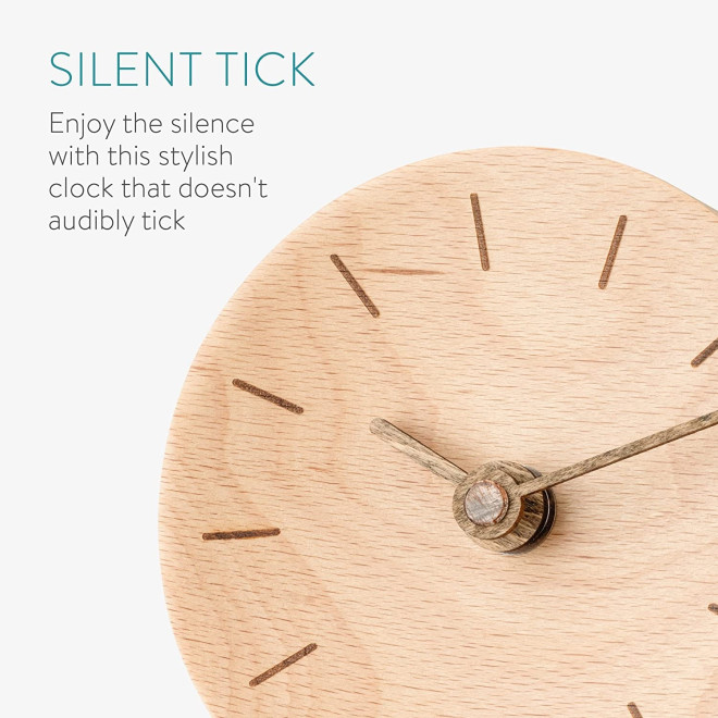 Αυτό το όμορφο και μικρό, ξύλινο αναλογικό επιτραπέζιο ρολόι της Navaris, έχει ένα στρογγυλό καντράν με την ώρα που υποδεικνύεται με μινιμαλιστικό τρόπο. Με τον ρετρό σχεδιασμό του, φέρνει μια διακοσμητική πινελιά σε κάθε δωμάτιο του σπιτιού σας.