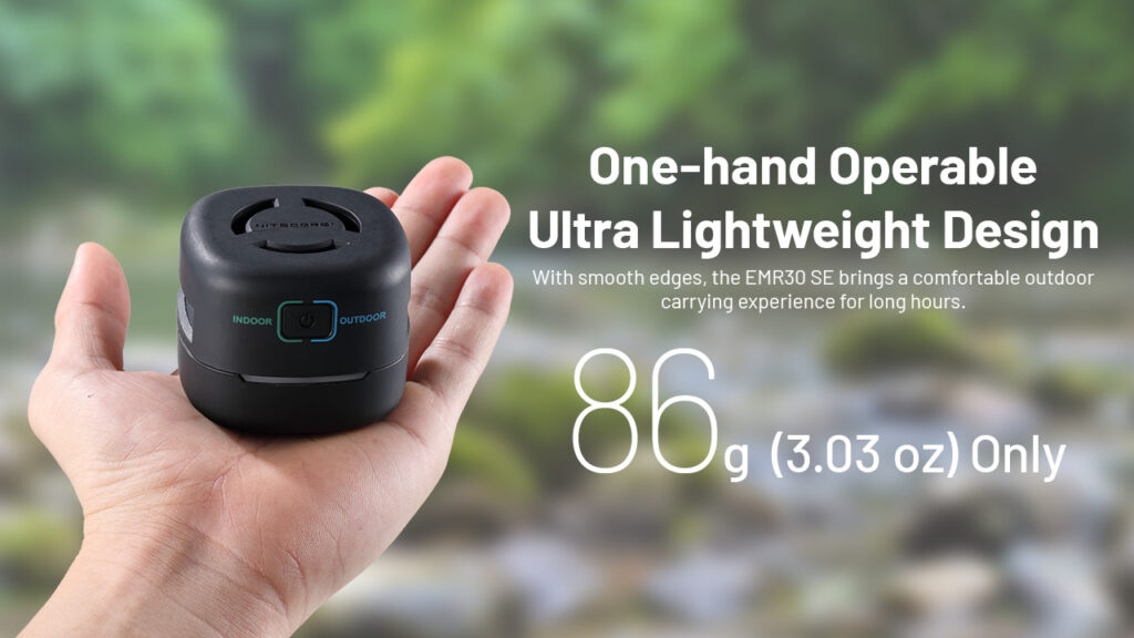 Με εξαιρετικά ελαφρύ σχεδιασμό, με ομαλές άκρες, για λειτουργία με το ένα χέρι, το EMR30 SE παρέχει εμπειρία άνετης μεταφοράς σε εξωτερικούς χώρους για πολλές ώρες, καθώς ζυγίζει μόλις 86g! Διαθέτει δύο προγράμματα λειτουργίας, το πρόγραμμα λειτουργίας σε εξωτερικό χώρο με ζώνη προστασίας 16 πόδια, περίπου 4.8 μέτρα και το πρόγραμμα λειτουργίας σε εσωτερικό χώρο με ζώνη προστασίας 11 πόδια, περίπου 3.3 μέτρα.