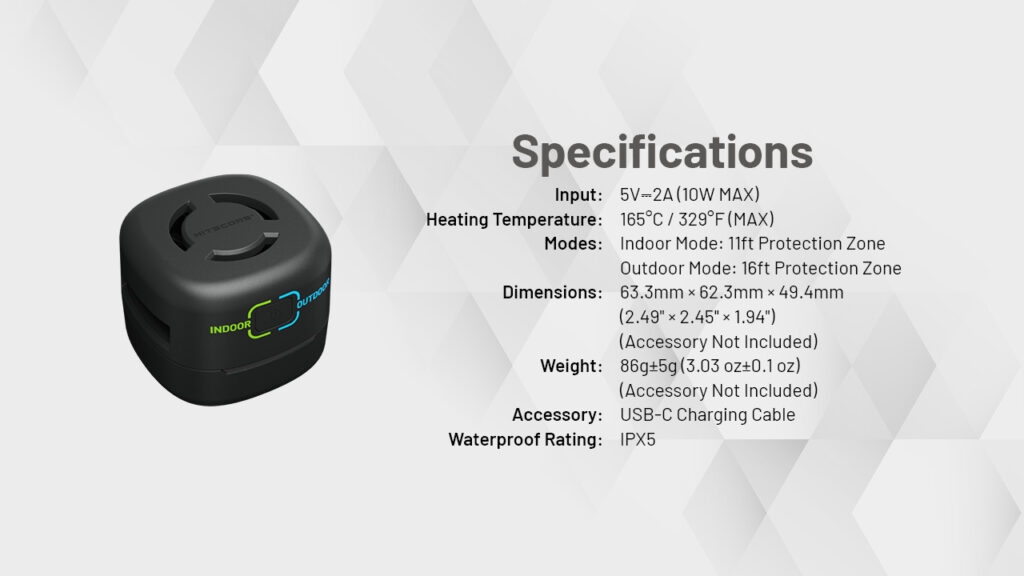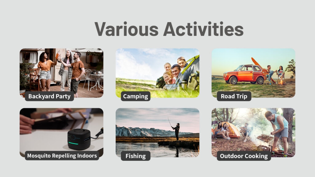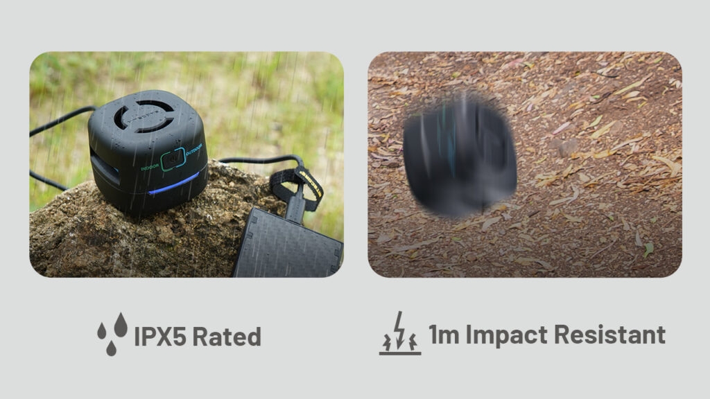 Τέλος, είναι αδιάβροχο με βαθμολογία IPX5 και ανθεκτικό σε πτώσεις έως και από 1 μέτρο ύψος. Προορισμένο να σας συνοδεύει σε διάφορες δραστηριότητες σας, όπως στο πάρτυ στην αυλή, στο κάμπινγκ, στο ταξίδι με το αυτοκίνητο, στην απώθηση κουνουπιών σε εσωτερικούς χώρους, στο ψάρεμα και στο μαγείρεμα σε εξωτερικούς χώρους.