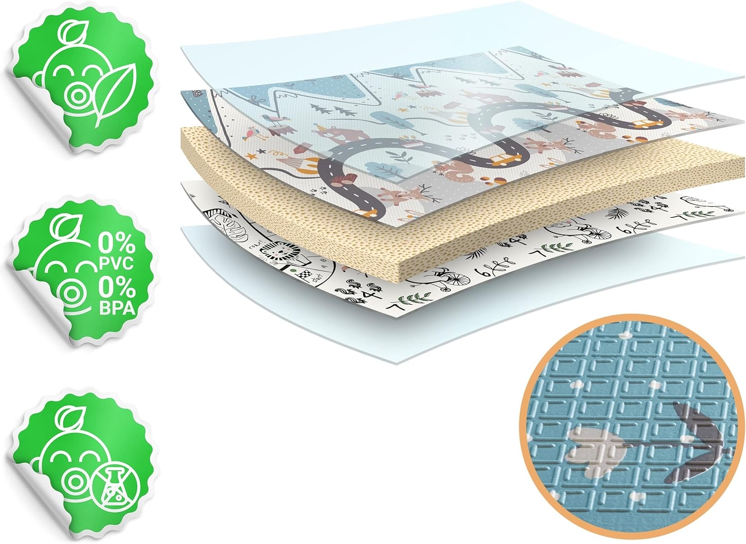 Το χαλάκι επιτρέπει στο μωρό σας να παίζει άνετα, χωρίς να έρχεται σε άμεση επαφή με το έδαφος. Τοποθετήστε το σε οποιοδήποτε δωμάτιο και βάλτε πάνω του όλα τα αγαπημένα παιχνίδια του παιδιού σας. Με προσοχή στη λεπτομέρεια και την ποιότητα, προσφέρει ένα ασφαλές και υγιές περιβάλλον παιχνιδιού για τα παιδιά σας!