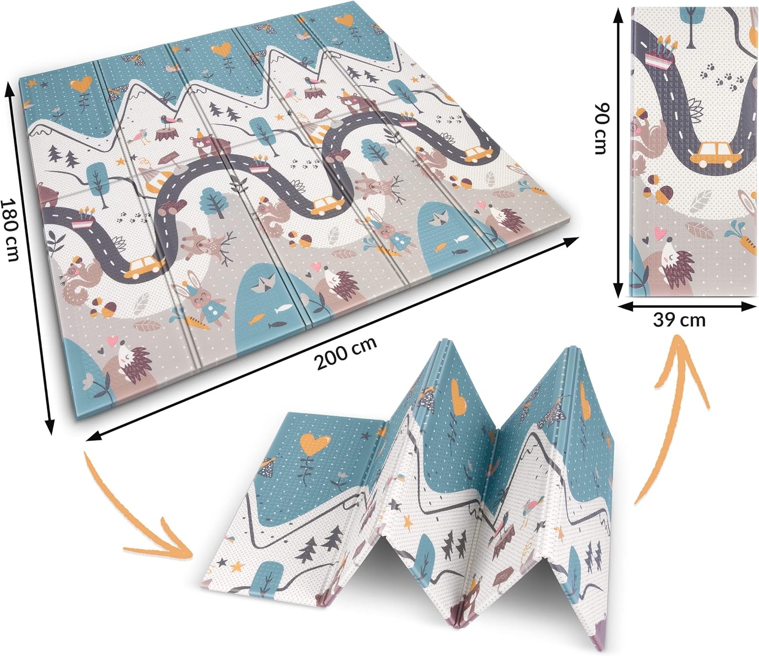Η επένδυση από αφρώδες υλικό, προσφέρει μια μαλακή περιοχή για να παίξει το παιδί ή το μωρό σας. Έτσι, μπορεί να παίζει πάνω στο χαλάκι, χωρίς να ανησυχείτε για τυχόν τραυματισμό λόγω σκληρού δαπέδου. Προσφέρει αρκετό χώρο για τις ώρες παιχνιδιού, καθώς διαθέτει διαστάσεις 200 x 180 x 1 cm και είναι κατασκευασμένο από αφρό XPE. Επίσης, με αυτό το χαλάκι το μωράκι σας μπορεί να μάθει να περπατάει.