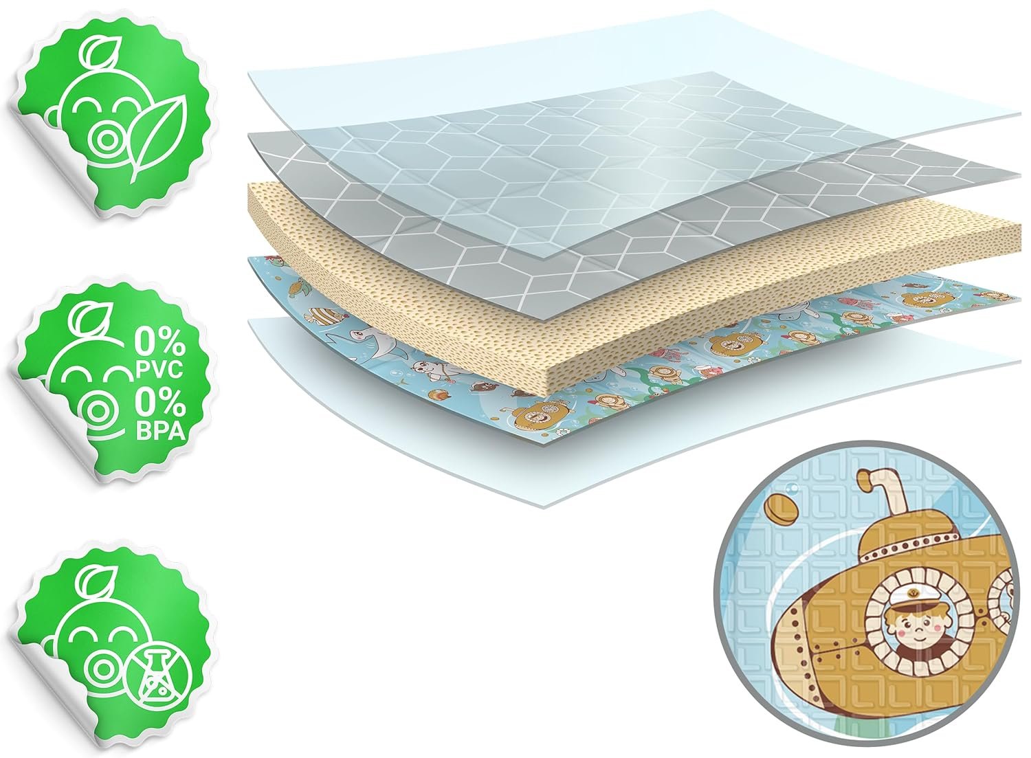 Το χαλάκι επιτρέπει στο μωρό σας να παίζει άνετα, χωρίς να έρχεται σε άμεση επαφή με το έδαφος. Τοποθετήστε το σε οποιοδήποτε δωμάτιο και βάλτε πάνω του όλα τα αγαπημένα παιχνίδια του παιδιού σας. Με προσοχή στη λεπτομέρεια και την ποιότητα, προσφέρει ένα ασφαλές και υγιές περιβάλλον παιχνιδιού για τα παιδιά σας!