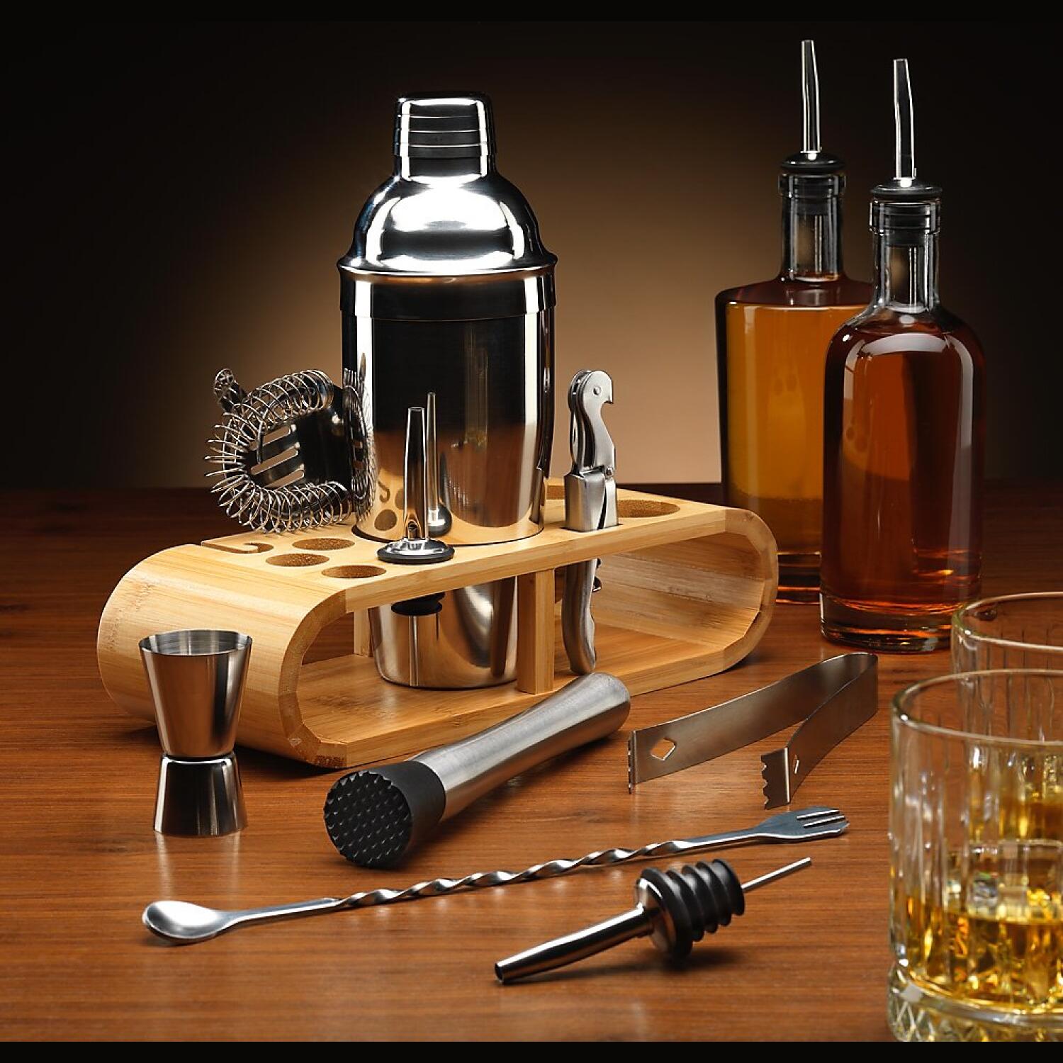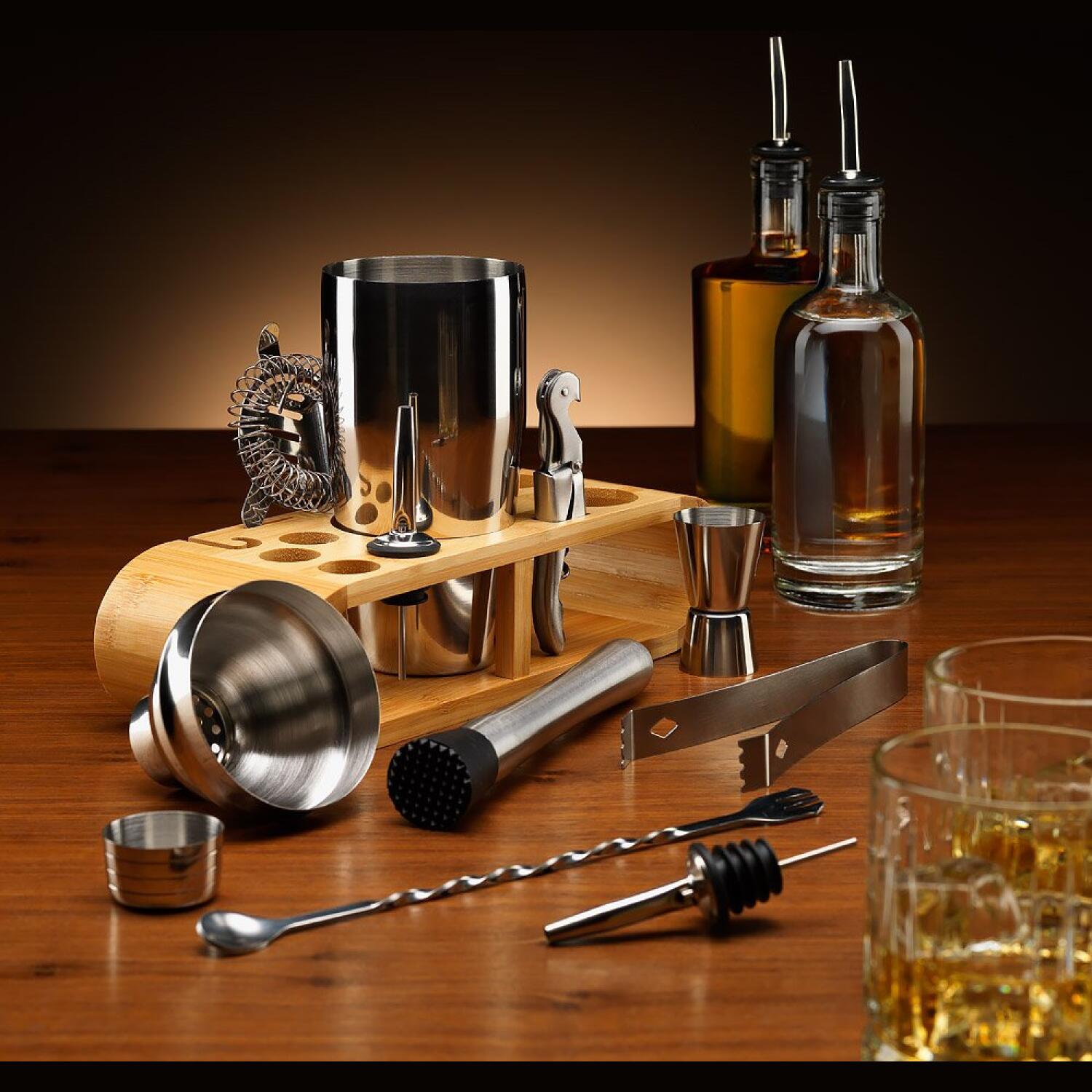 Φτιάξτε δροσερά Mojito ή ένα μοναδικό Negroni. Είναι ένα πλήρες σετ με στιβαρή και κομψή κατασκευή, το οποίο σας προσφέρει όλα όσα χρειάζεστε για να δημιουργήσετε κοκτέιλ από το σπίτι σας σαν επαγγελματίας Bartender! Είναι κατασκευασμένο από υψηλής ποιότητας ανοξείδωτο με ξύλινη βάση, υλικά ανθεκτικά και καλαίσθητα!