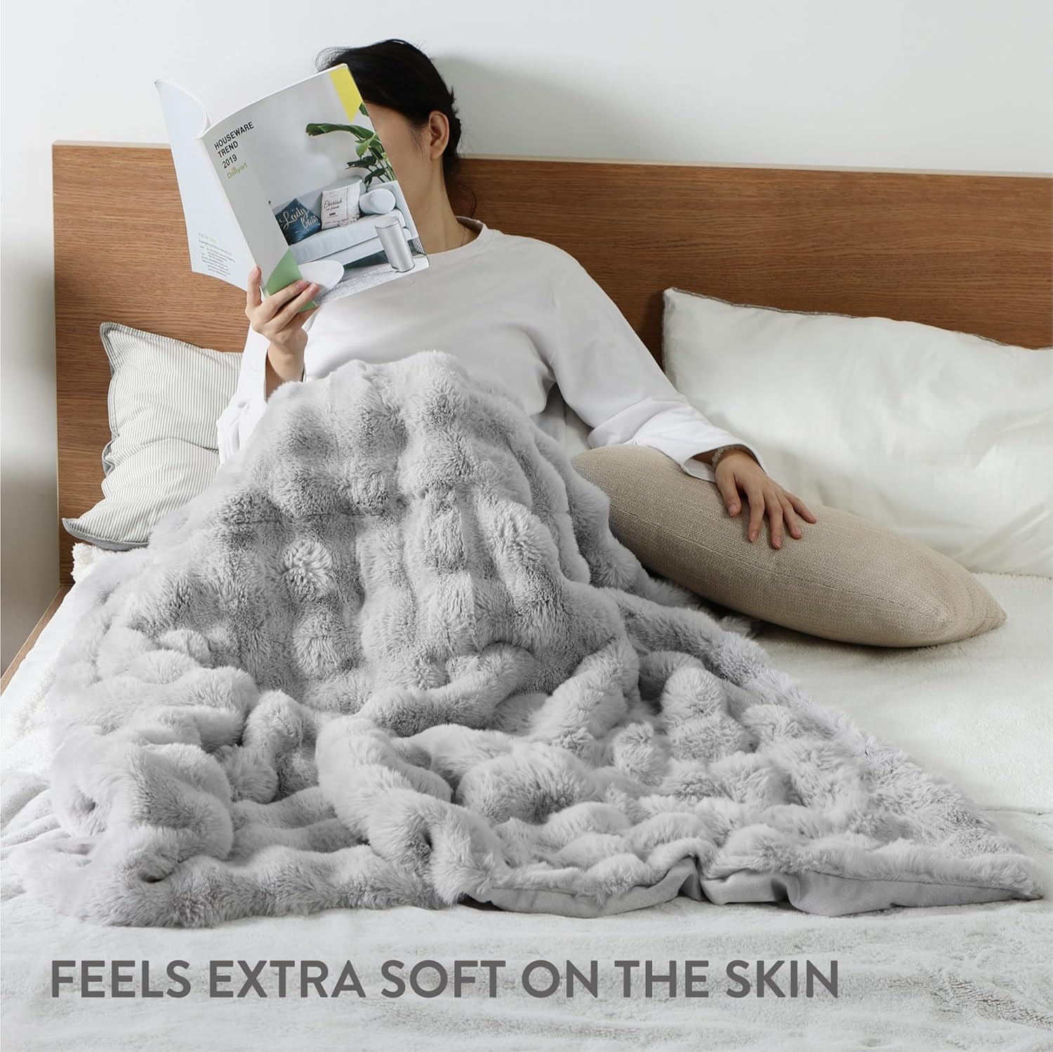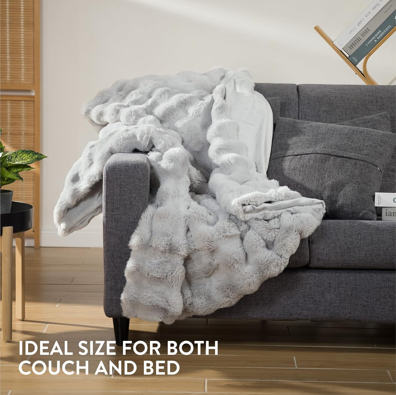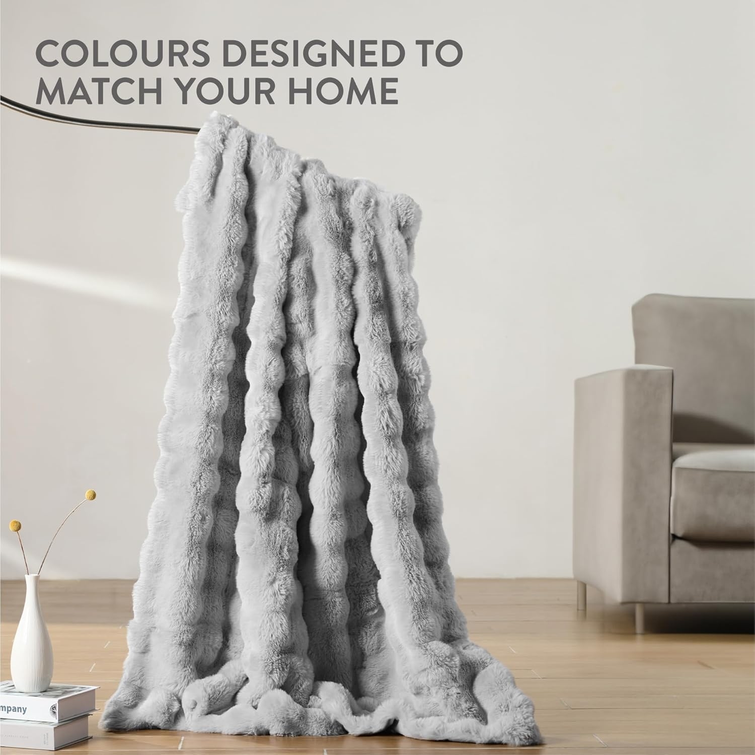 Homelevel Faux Fur Throw - Απαλή Ζεστή Κουβέρτα για Καναπέ & Κρεβάτι - 127 x 152 cm - Grey ‎(HOM0000272I002C)