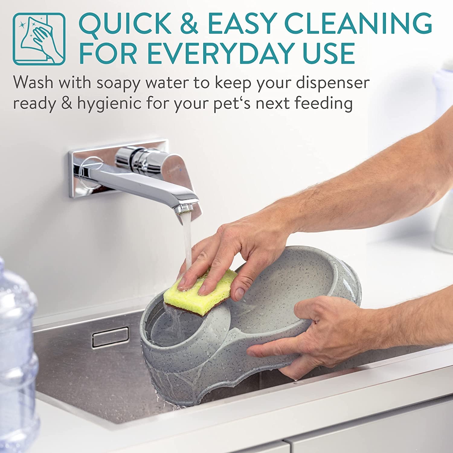 Σημείωση: Δεδομένου ότι η ποσότητα τροφίμων και νερού εξαρτάται από το μέγεθος και τη ράτσα του σκύλου ή της γάτας σας, ελέγχετε τακτικά το επίπεδο πλήρωσης των διανεμητών για να βεβαιωθείτε ότι το κατοικίδιό σας θα έχει αρκετό φαγητό και νερό. Λάβετε υπόψη ότι ο διανομέας φαγητού δεν είναι κατάλληλος για υγρή τροφή. Για να διατηρήσετε τα δοχεία καθαρά, συνιστούμε να τα πλένετε με ζεστό νερό και λίγο σαπούνι, κάθε 5 ημέρες τουλάχιστον.