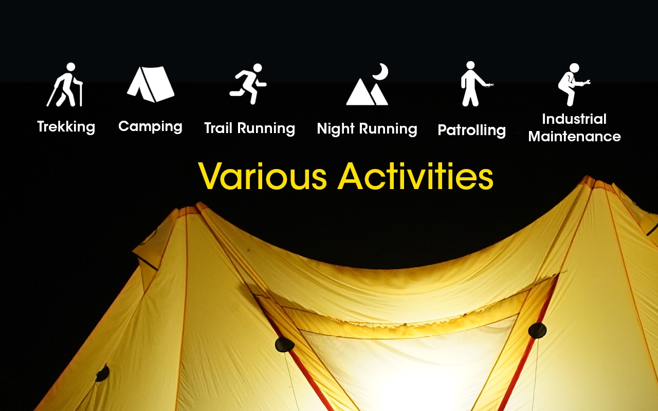 Η βάση στήριξης μπορεί να περιστραφεί κατά 72 μοίρες και μπορεί να μετακινηθεί προς τα επάνω γρήγορα ώστε να αποφευχθεί ο άμεσος φωτισμός του προσωπικού στα σημεία βοήθειας. Η χρήση του φακού περιλαμβάνει πολλές δραστηριότητες, πεζοπορία, κάμπινγκ, τρέξιμο σε ορεινά μονοπάτια, νυχτερινό τρέξιμο, περιπολία και βιομηχανική συντήρηση.