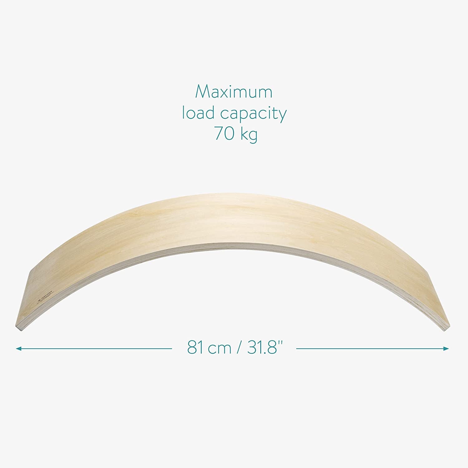 Κατασκευασμένη από κόντρα πλακέ υψηλής ποιότητας, η σανίδα ισορροπίας είναι κυρτή σε σχήμα καμάρας, με μινιμαλιστικές καμπύλες οι οποίες δένουν όμορφα σε κάθε decor. Με βάρος λίγο λιγότερο από 2 κιλά, είναι ακριβώς το κατάλληλο βάρος για να χειριστεί ένα παιδί, ενώ εξακολουθεί να είναι αρκετά στιβαρό.