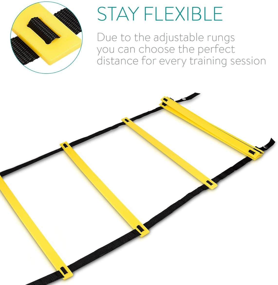 Εκπαιδεύστε τον συντονισμό και την ταχύτητά σας με τη σκάλα επιτάχυνσης της Navaris. Οι 12 επίπεδες, ρυθμιζόμενες ράβδοι αυτού του αξεσουάρ προπόνησης είναι ρυθμιζόμενες ανάλογα με τις ανάγκες σας.