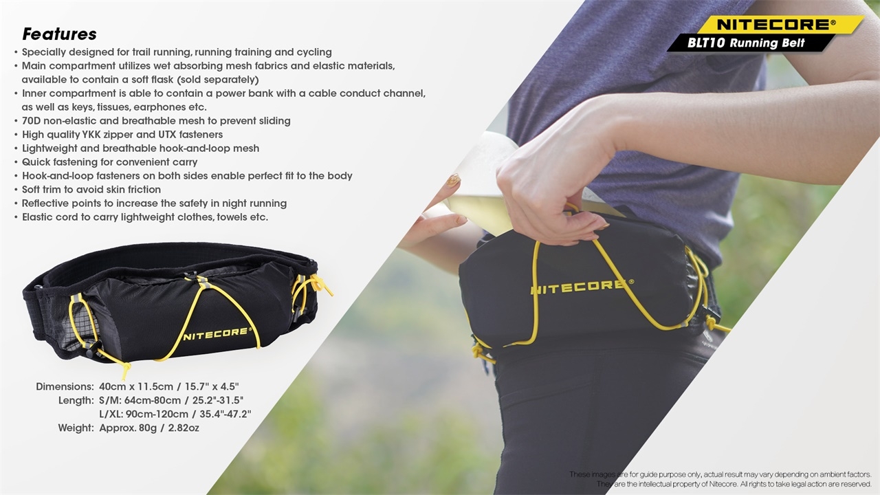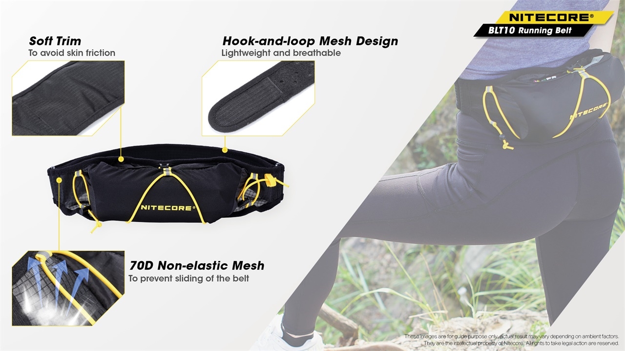 Η BLT10 της Nitecore είναι μία ελαφριά ζώνη για δρομείς, που αναπνέει και δεν γλιστρά. Είναι ειδικά σχεδιασμένη για δραστηριότητες στην φύση, όπως τρέξιμο σε ορεινές διαδρομές, ορειβασία, εξερεύνηση στο βουνό και ποδηλασία, ενώ διαθέτει και δετικά γρήγορης απελευθέρωσης.