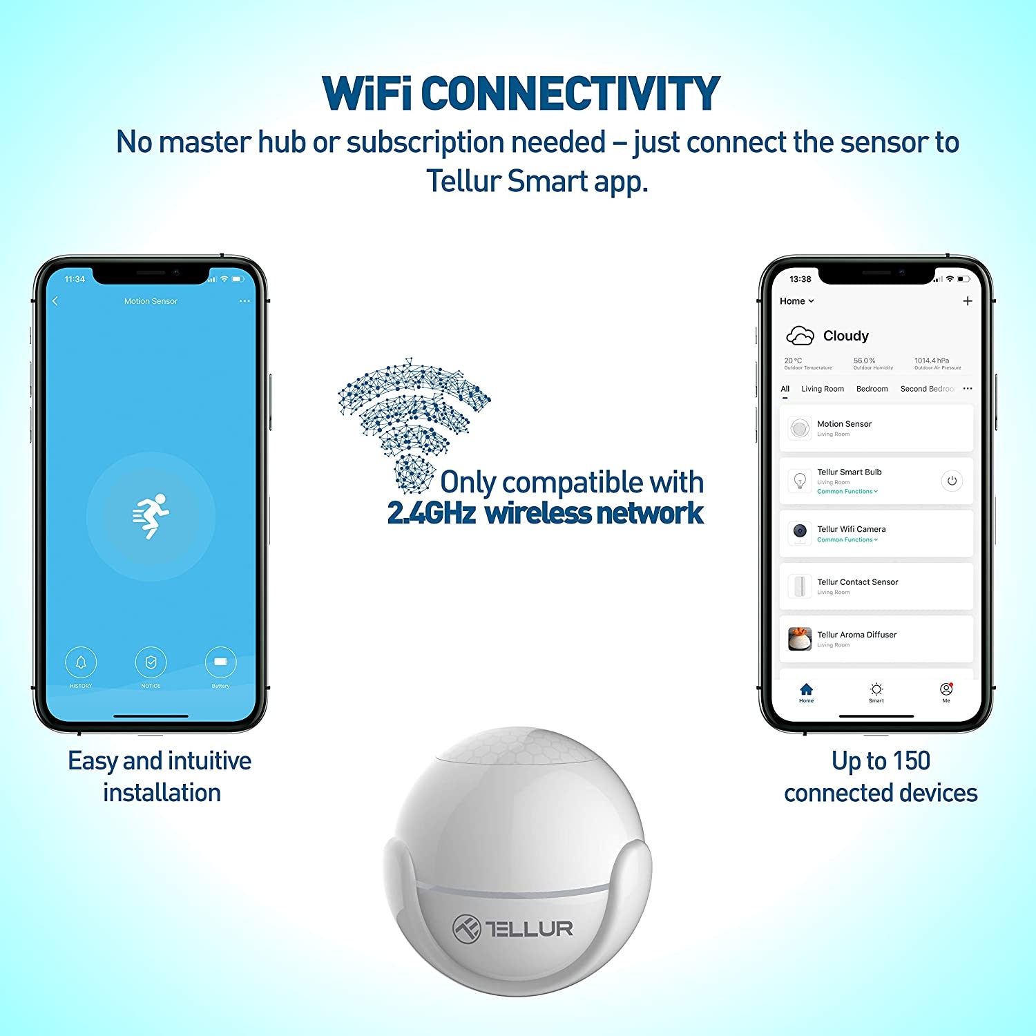 Ο αισθητήρας κίνησης WiFi είναι συμβατός με τις smart λειτουργίες που μπορείτε να ρυθμίσετε από την εφαρμογή και λειτουργεί αποκλειστικά σε δίκτυα WiFi 2,4 GHz. Επίσης, υπάρχει ειδοποίηση στο smartphone σας, όταν οι μπαταρίες είναι αδύναμες ή όταν κάποιος προσπαθεί να αποσπάσει τον αισθητήρα από τη βάση του.