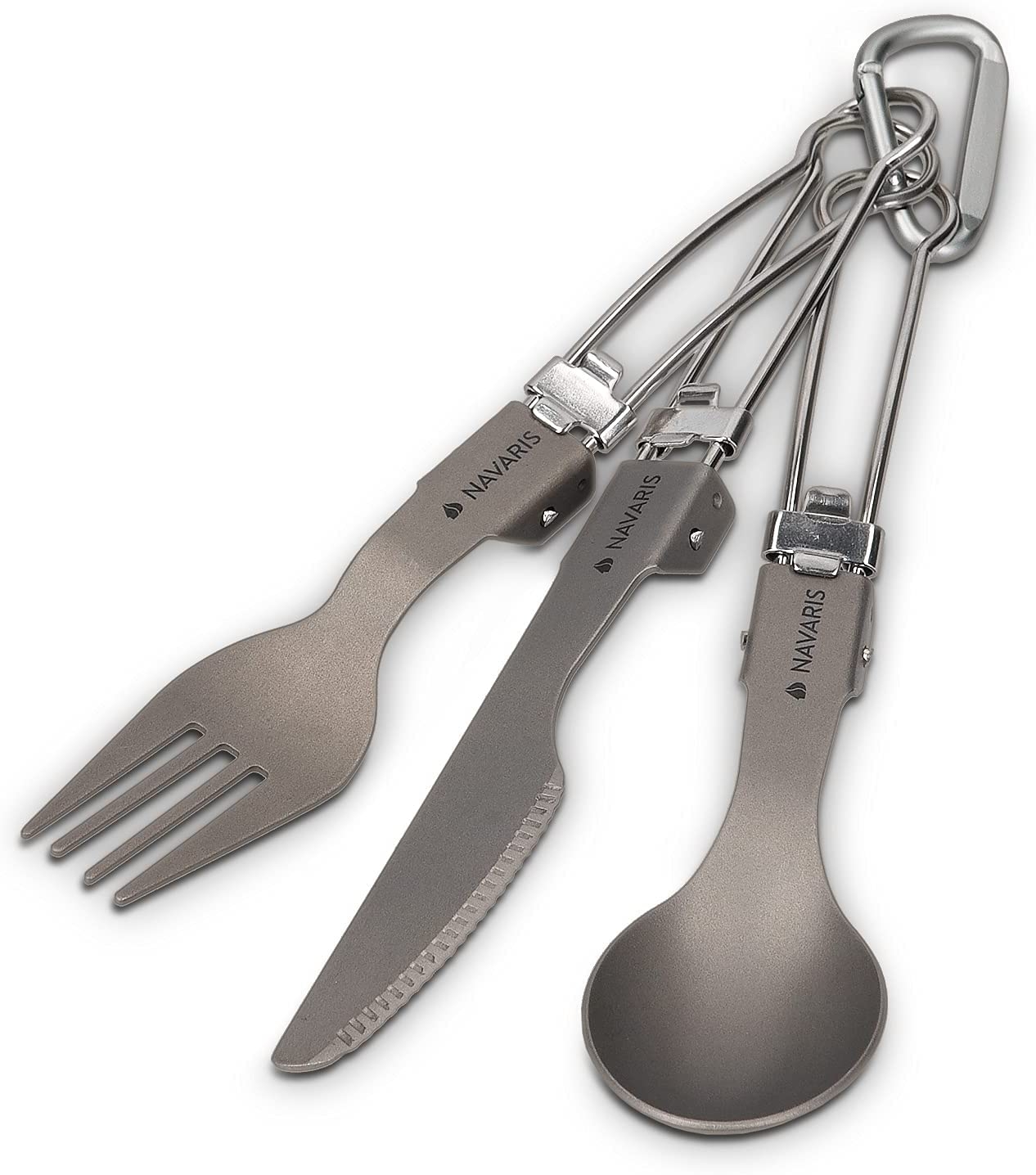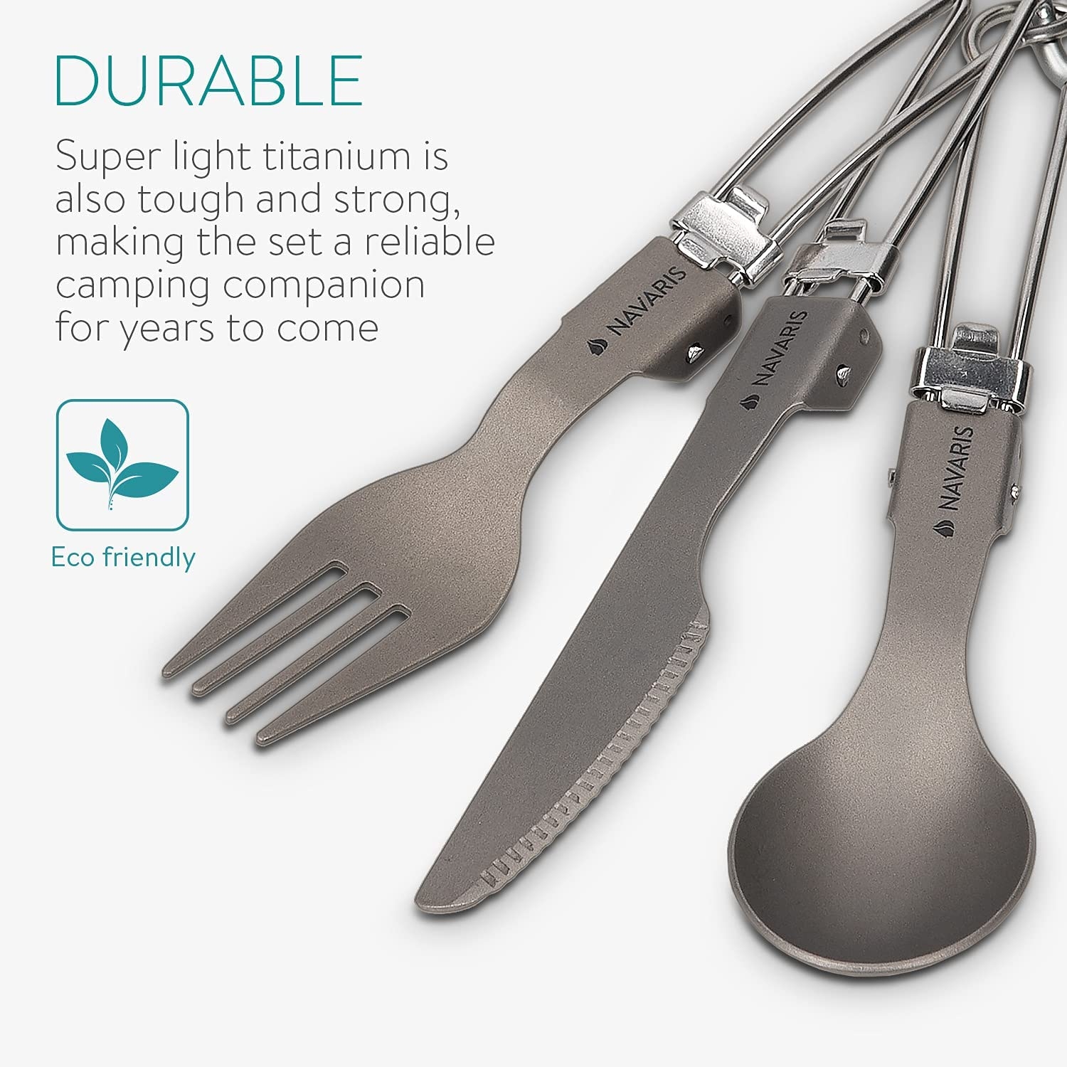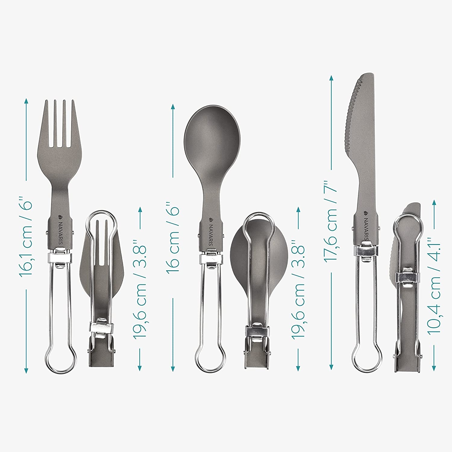 Το εξαιρετικά ελαφρύ σετ από αναδιπλούμενα μαχαιροπίρουνα τιτανίου της Navaris είναι ιδανικό για κάμπινγκ, πεζοπορία, πικ-νικ ή για να τρώτε το αγαπημένο σας γεύμα στην εργασία σας. Μπορεί να διπλωθεί άνετα για να διευκολύνει τη μεταφορά του, όταν βρίσκεστε σε εξωτερικό χώρο ή εν κινήσει.