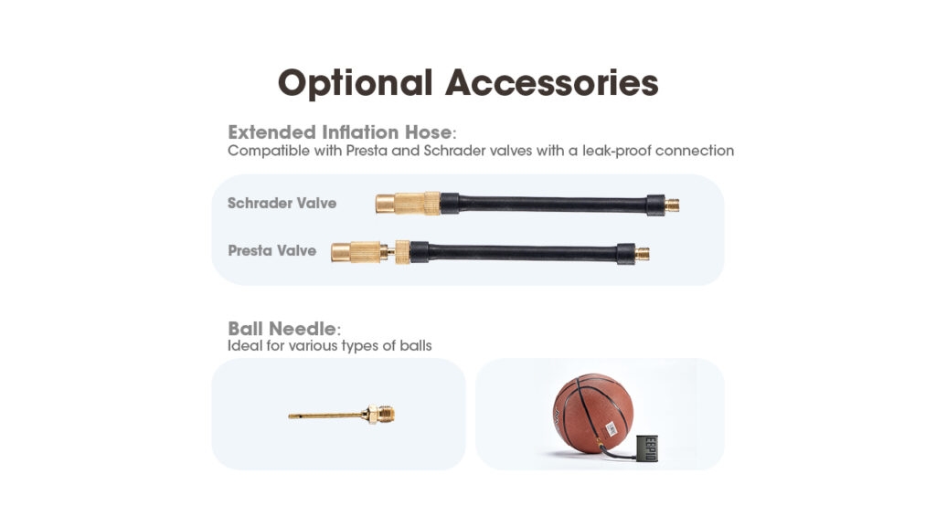 Διαθέτει 6 λειτουργίες φουσκώματος για κάθε τύπο ελαστικού και μπάλα, με προεπιλογή για τη βαλβίδα Schrader και εύκολη μετατροπή μονάδας πίεσης (psi / Bar), ενώ σταματά αυτόματα τη λειτουργία όταν επιτευχθεί η προκαθορισμένη πίεση, αποτρέποντας την υπερπλήρωση. Με αντοχή σε πτώσεις έως 1 μέτρο και αδιαβροχοποίηση IP44, είναι κατασκευασμένη για να αντέχει στις πιο απαιτητικές συνθήκες.