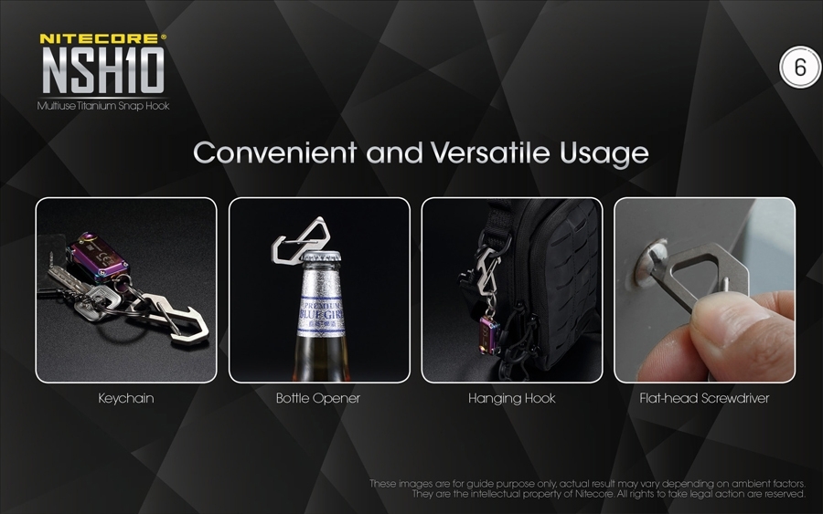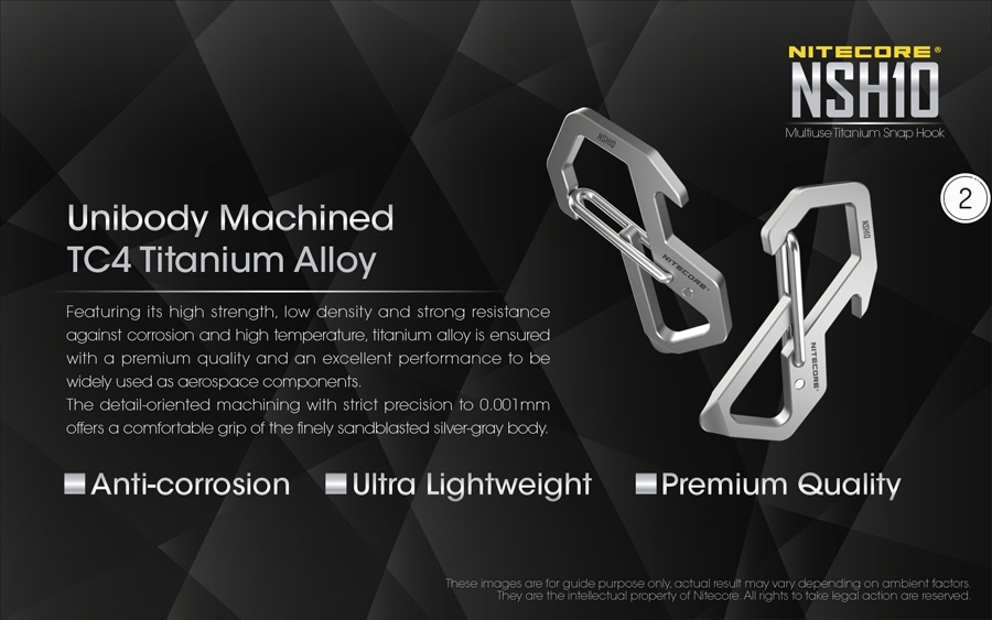 Ο πολυχρηστικός κρίκος NSH10 της Nitecore, είναι ένα αξιόπιστο εργαλείο που συνδυάζει την ανθεκτικότητα και την λειτουργικότητα για να καλύψει τις ανάγκες σας σε κάθε περίπτωση, ενώ είναι κατασκευασμένος από το υψηλής ποιότητας κράμα τιτανίου TC4, υλικό που χρησιμοποιείται ευρέως στην κατασκευή εξαρτημάτων για τα αεροπλάνα.