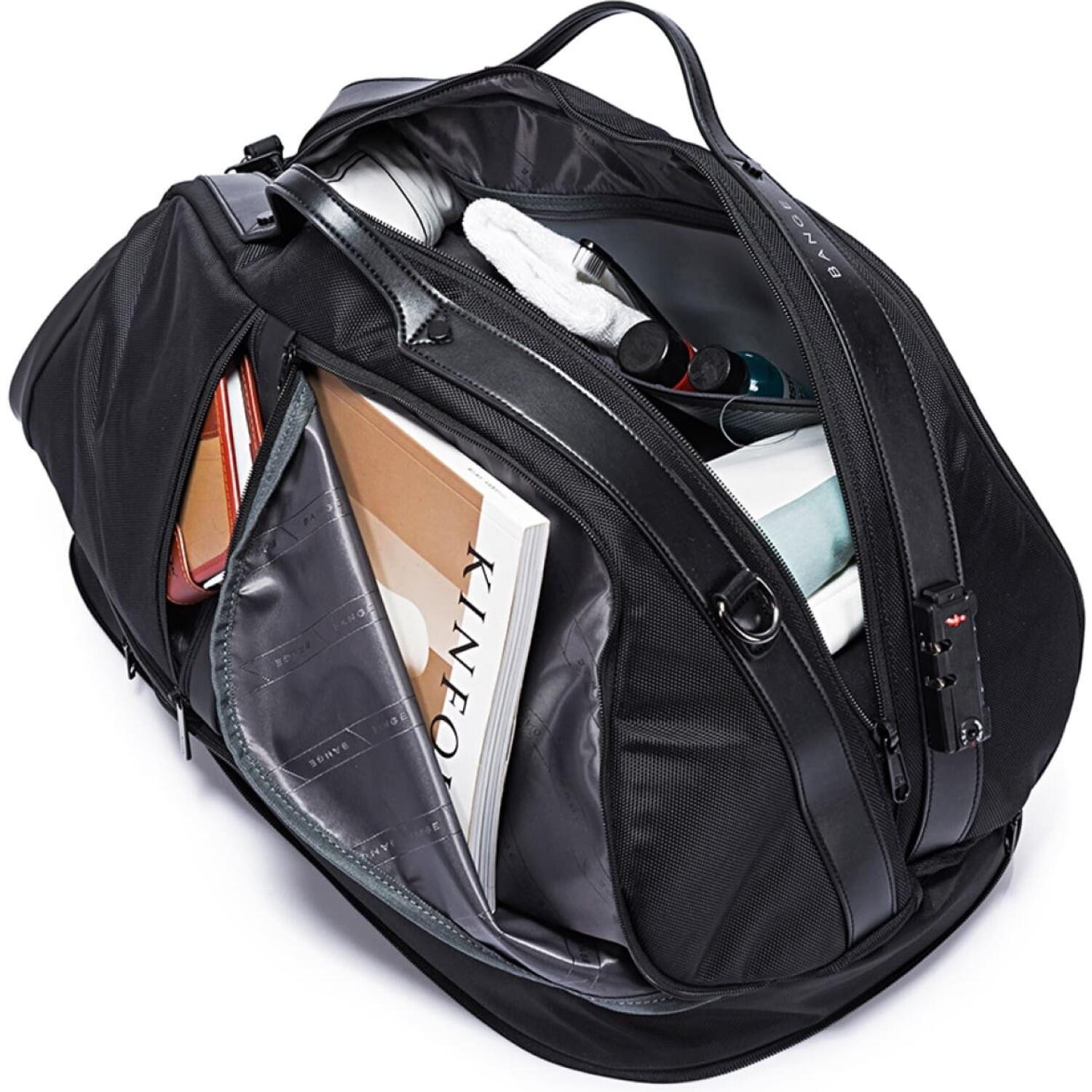 Διαθέτει πολλαπλές εσωτερικές τσέπες με φερμουάρ για την ασφαλή αποθήκευση των προσωπικών σας αντικειμένων. Υπάρχει και μία πρακτική θήκη για παπούτσια, ειδική αδιάβροχη θήκη για τις βρεγμένες πετσέτες ή τα προϊόντα περιποίησης. Επιπλέον, διαθέτει δύο πλαϊνές εξωτερικές τσέπες για γρήγορη πρόσβαση στα απαραίτητα αντικείμενά σας.
