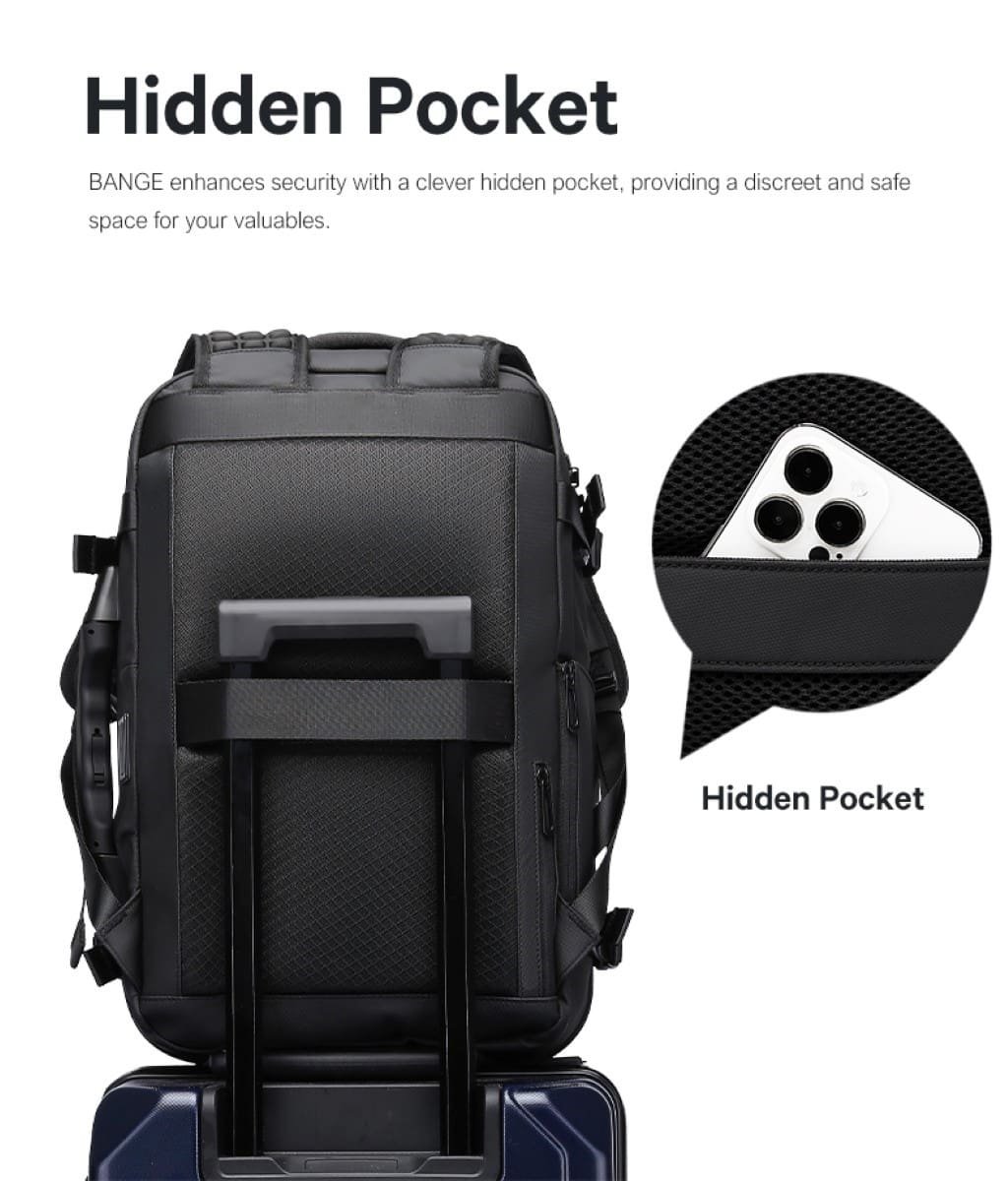 Η κρυφή τσέπη με φερμουάρ στο πίσω μέρος του σακιδίου προσφέρει έξυπνη προστασία για πολύτιμα αντικείμενα, όπως το κινητό, το διαβατήριο ή το πορτοφόλι σας, μειώνοντας τον κίνδυνο κλοπής κατά τη διάρκεια του ταξιδιού ή ενώ περιμένετε σε ουρές. Είναι κατασκευασμένο από αδιάβροχο υλικό PVC και με εσωτερική αδιάβροχη θήκη, για την προστασία των αντικειμένων σας από την υγρασία και το νερό.