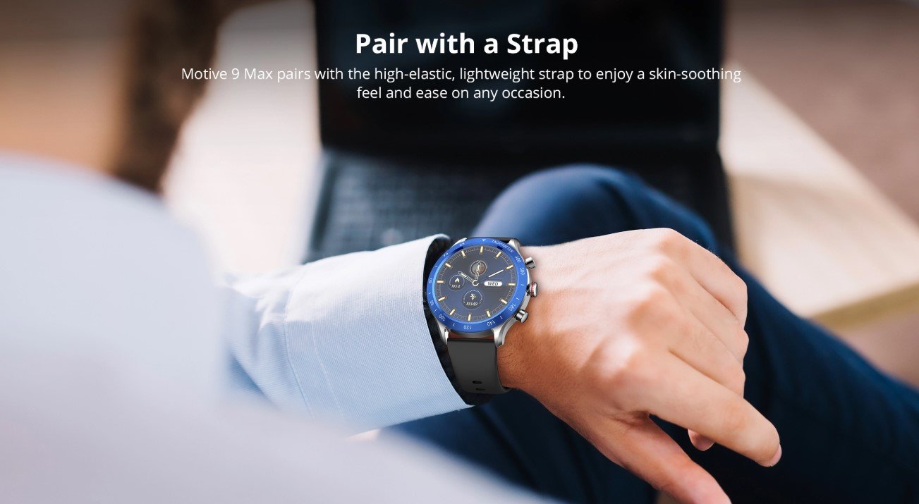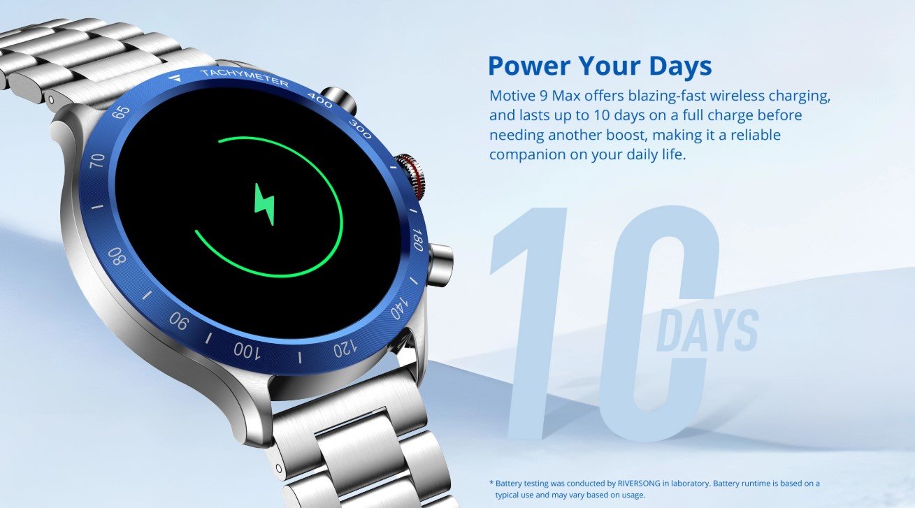 Το Motive 9 Max προσφέρει απίστευτα γρήγορη ασύρματη φόρτιση και διαρκεί έως και 10 ημέρες με πλήρη φόρτιση, καθιστώντας το έναν αξιόπιστο σύντροφο στην καθημερινότητά σου. Ο βιολογικός αισθητήρας παρέχει γρήγορη και ακριβή 24ωρη παρακολούθηση του καρδιακού ρυθμού, του κορεσμού του αίματος-οξυγόνου (SpO2) και των επιπέδων στρες.
