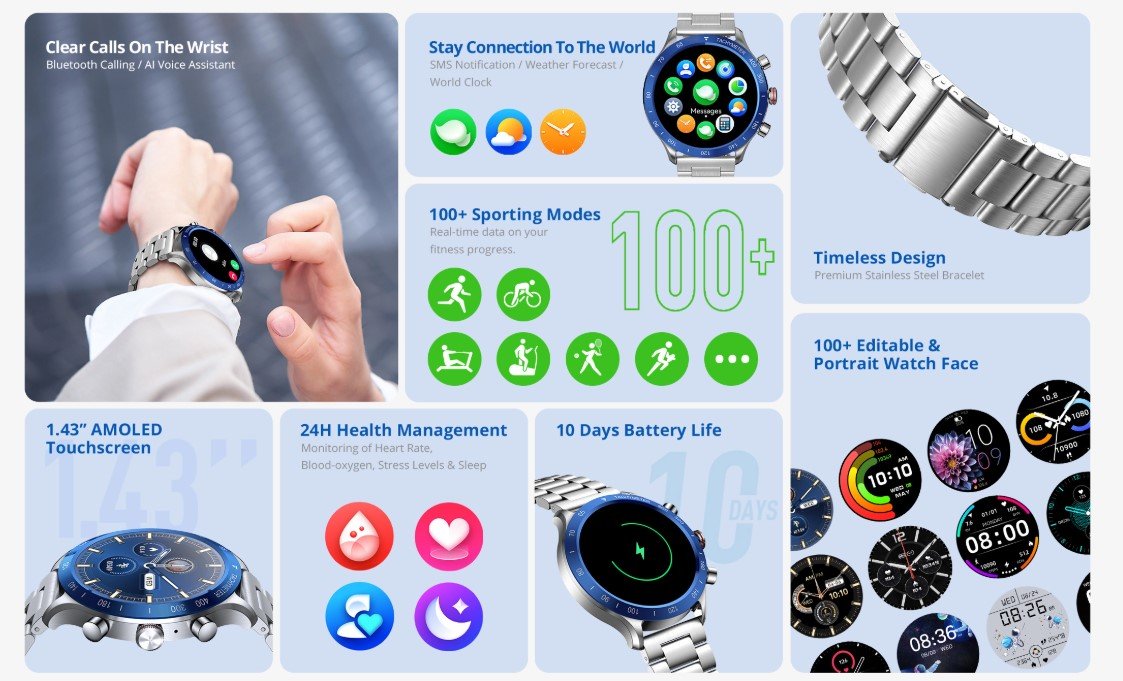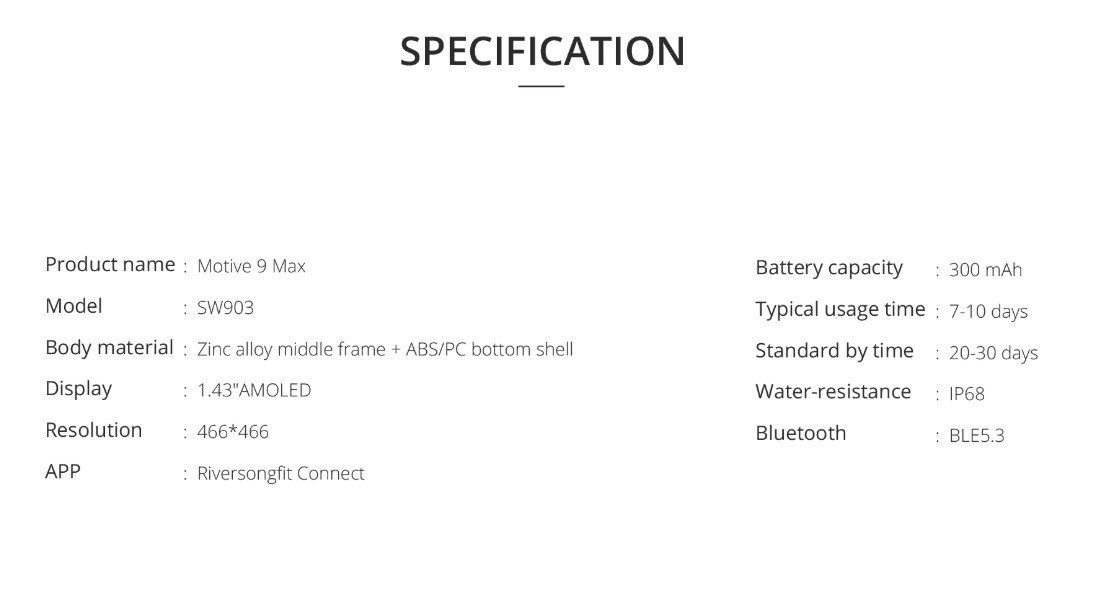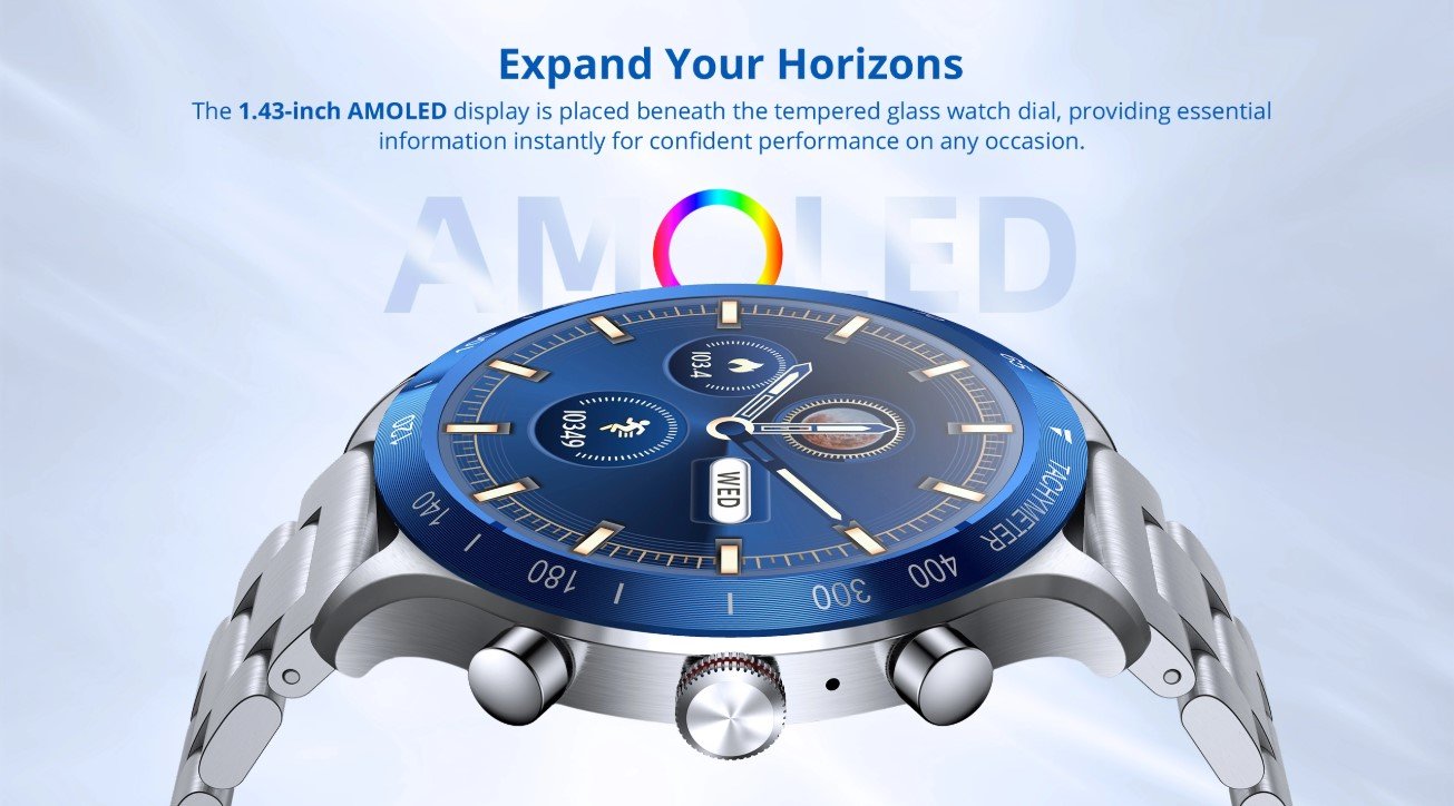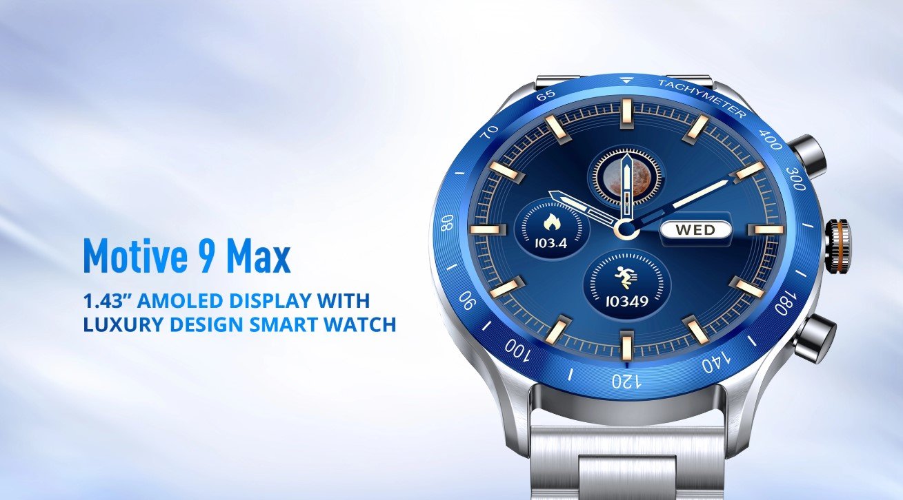 Το smartwatch Motive 9 Max της Riversong διαθέτει οθόνη AMOLED 1,43 ιντσών η οποία τοποθετείται κάτω από τον επιλογέα ρολογιού από σκληρυμένο γυαλί, παρέχοντας απαραίτητες πληροφορίες σχετικά με τη στιγμή για σίγουρη απόδοση σε κάθε περίσταση.