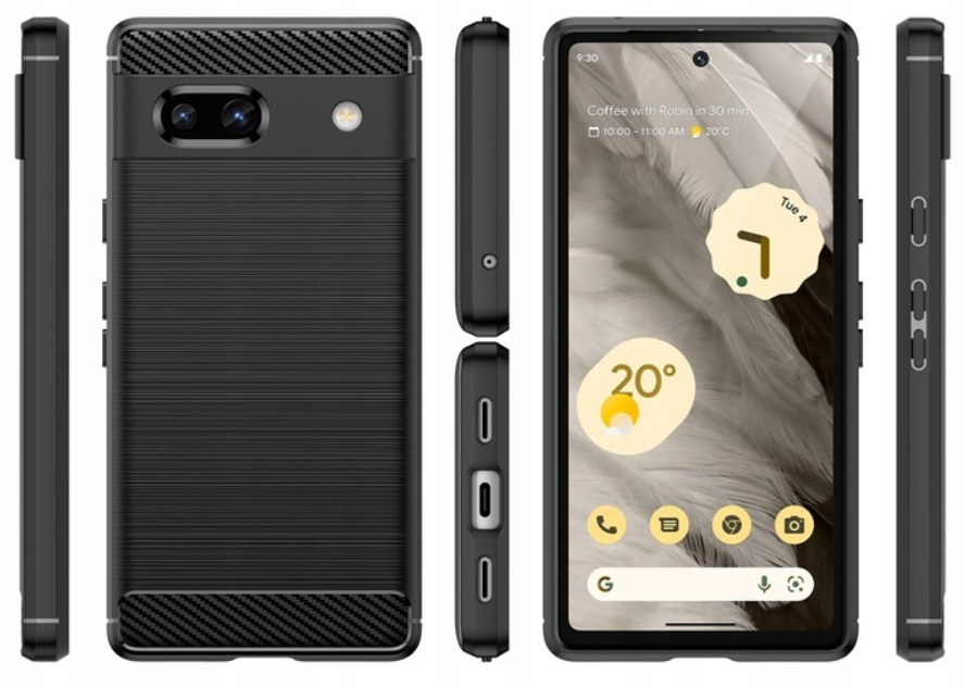 Είναι κατασκευασμένη από εύκαμπτη θερμοπλαστική πολυουρεθάνη TPU, η οποία απορροφά τους κραδασμούς. Διαθέτει ένα μοναδικό φινίρισμα από ανθρακονήματα εξωτερικά, ενώ εσωτερικά έχει έναν κυψελοειδή σχεδιασμό, ώστε να προστατεύει το Google Pixel 7a από γρατζουνιές, φθορές, πτώσεις ή χτυπήματα.