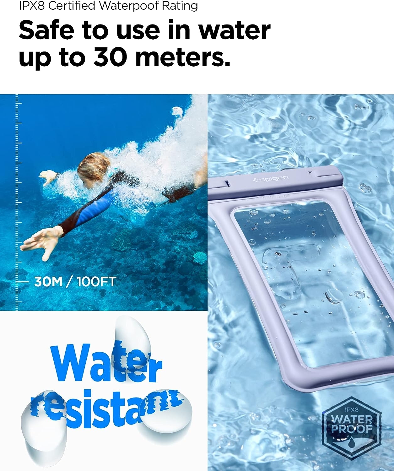 Η A610 Aqua Shield της Spigen, είναι μια πλήρως αδιάβροχη θήκη, ειδικά σχεδιασμένη για την προστασία του αγαπημένου σας Smartphone με μεγάλη οθόνη έως 6.8''. Διαθέτει πιστοποίηση αντοχής στο νερό μέχρι και 30 μέτρα (IPX8), που σημαίνει πως μπορείτε να τη χρησιμοποιείτε άφοβα στην παραλία ή στην πισίνα στις καλοκαιρινές σας εξορμήσεις!