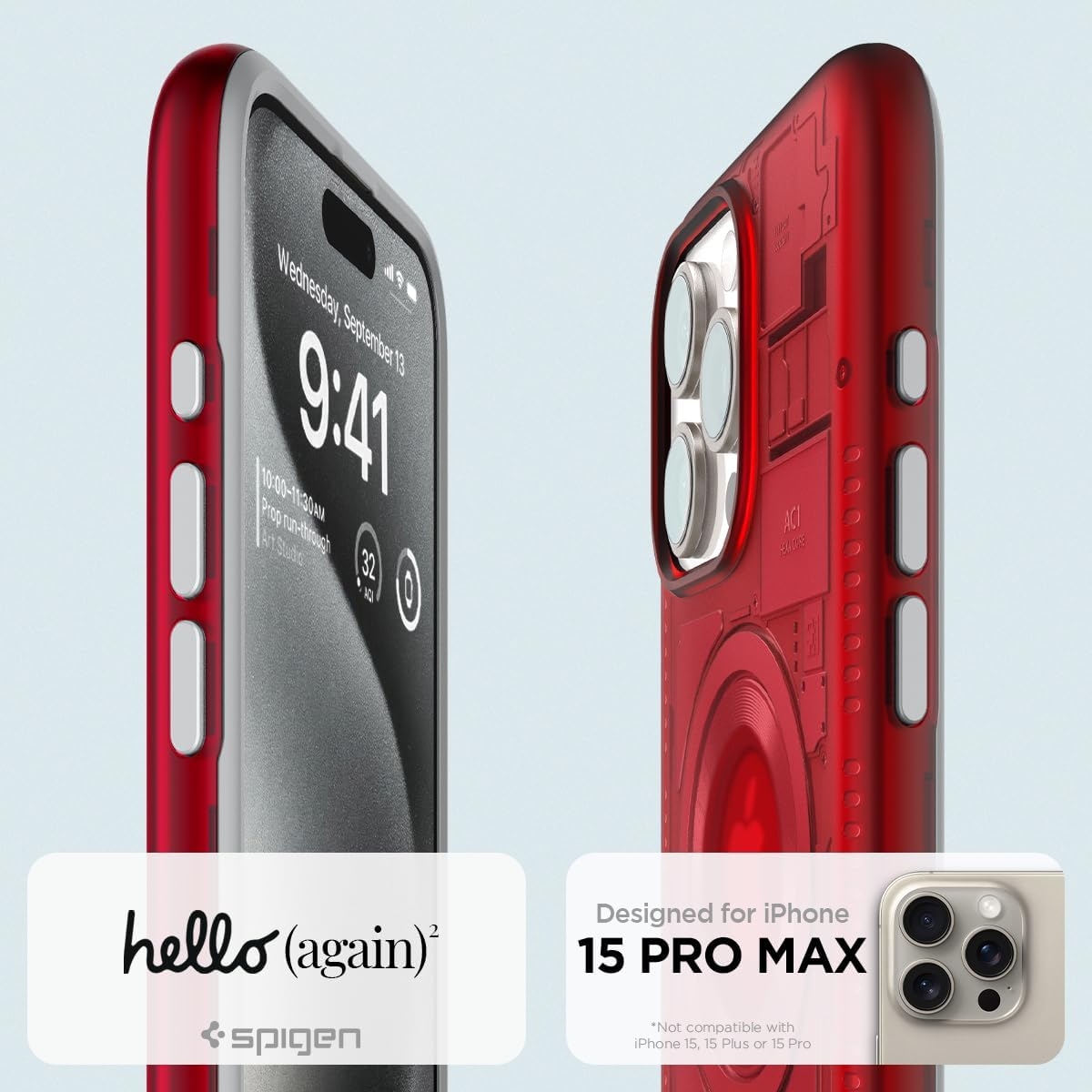 Η θήκη είναι συμβατή μόνο με το iPhone 15 Pro Max και όχι με το iPhone 15 Pro, 15 Plus ή 15.
