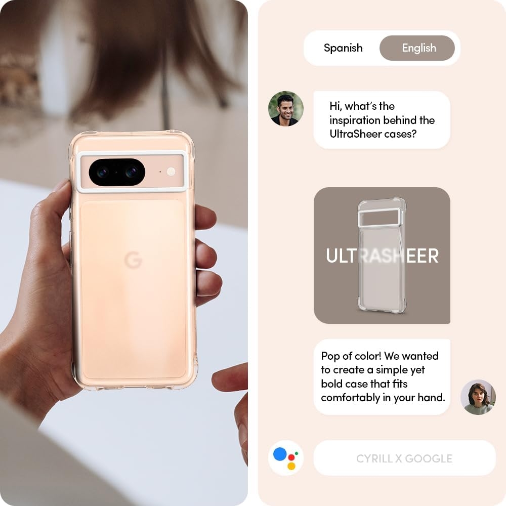 Η ημιδιάφανη θήκη UltraSheer της σειράς Cyrill της Spigen έχει μινιμαλιστική σχεδίαση και εφαρμόζει τέλεια στο Google Pixel 8 προστατεύοντάς το από την καθημερινή χρήση! Επίσης, είναι ενισχυμένη με Ultra Bubble σχεδιασμό και στις 4 γωνίες, για πρόσθετη προστασία από χτυπήματα.