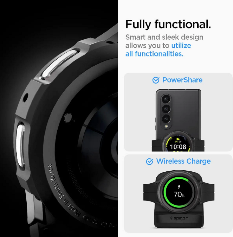 Σχεδιασμένη για να είναι όσο λεπτότερη γίνεται ενώ διαθέτει ένα ελαφρώς αυξημένο χείλος περιμετρικά έτσι ώστε να προστατευτεί το αγαπημένο σας smartwatch όσο το δυνατόν περισσότερο από πτώσεις. Συμβατή και με λειτουργία ασύρματης φόρτισης για να έχετε το smartwatch μαζί σας παντού!