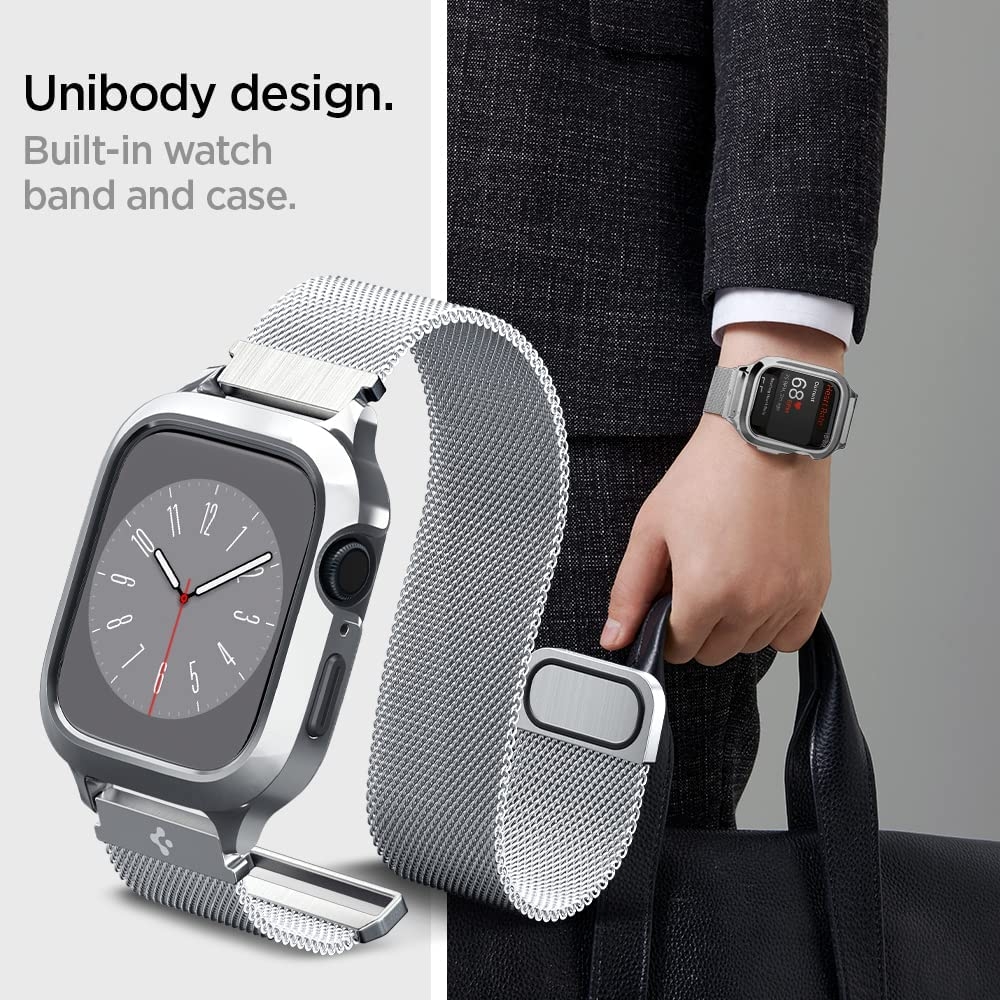 Το κομψό και διαχρονικό σετ Metal Fit Pro της Spigen, το οποίο αποτελείται από θήκη και milanese λουράκι, είναι ειδικά σχεδιασμένο για το αγαπημένο σας Apple Watch SE3/SE2/SE1/9/8/7/6/5/4 (45/44mm). Το λουράκι είναι κατασκευασμένο από υψηλής ποιότητας ανοξείδωτο ατσάλι και διαθέτει ένα ρυθμιζόμενο μαγνητικό κούμπωμα.