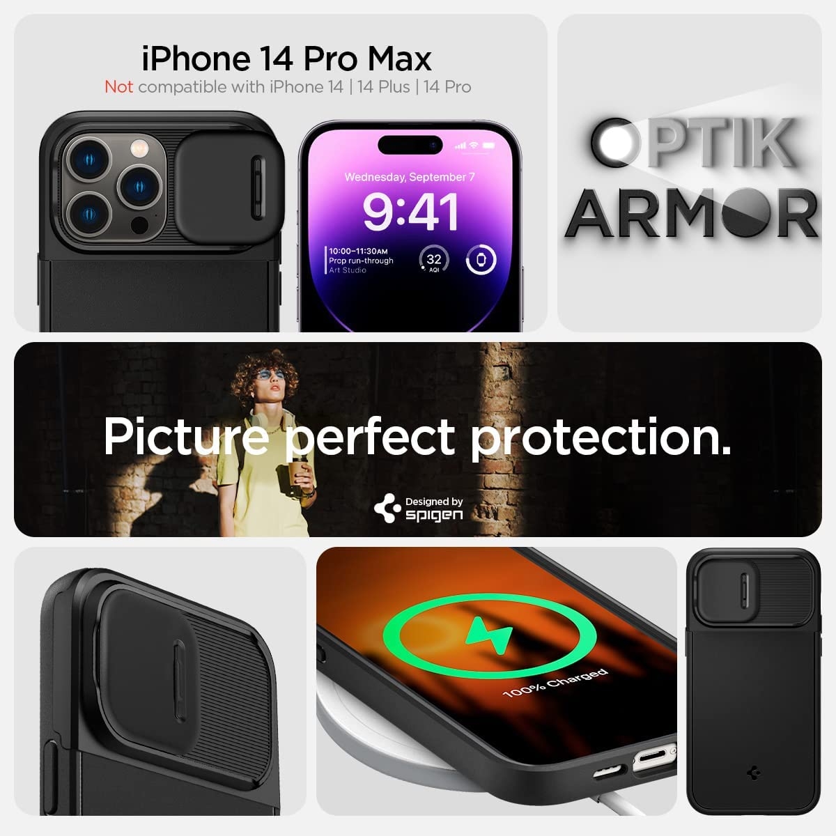 Η θήκη Optik Armor MagFit της Spigen είναι κατασκευασμένη για να εφαρμόζει τέλεια στο iPhone 14 Pro Max και να το προστατεύει από την καθημερινή χρήση και αποτελεσματικά, χωρίς να προσθέτει επιπλέον όγκο στη συσκευή σας. Διαθέτει ενσωματωμένο μαγνήτη συμβατό με την ασύρματη φόρτιση MagSafe και με την προσάρτηση σε αξεσουάρ MagSafe.