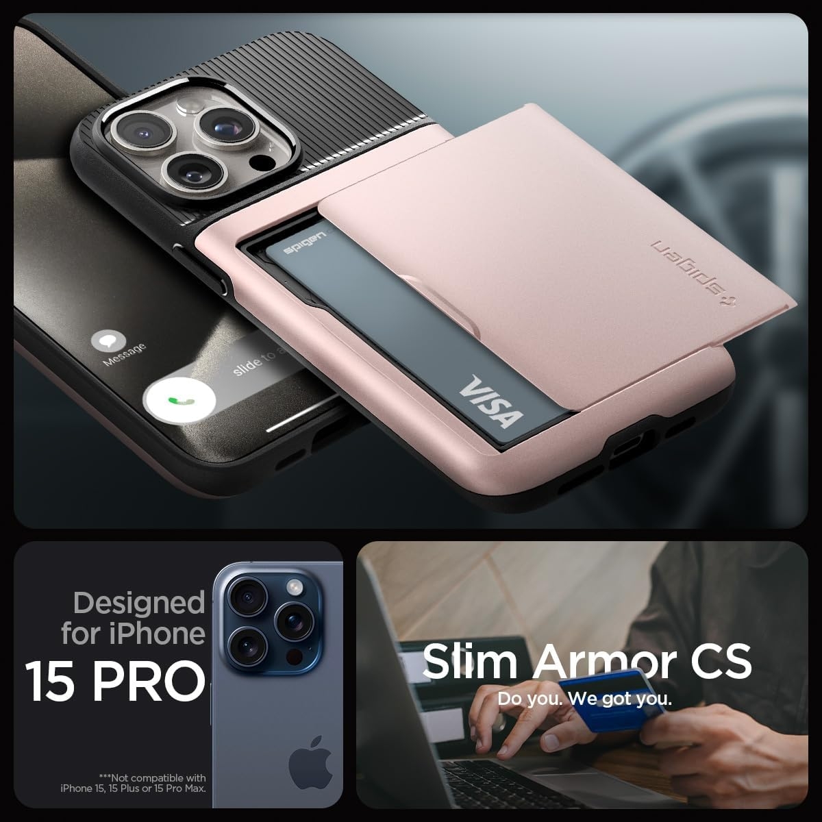 Η θήκη είναι συμβατή μόνο με το iPhone 15 Pro και όχι με το iPhone 15, 15 Pro Max ή 15 Plus.