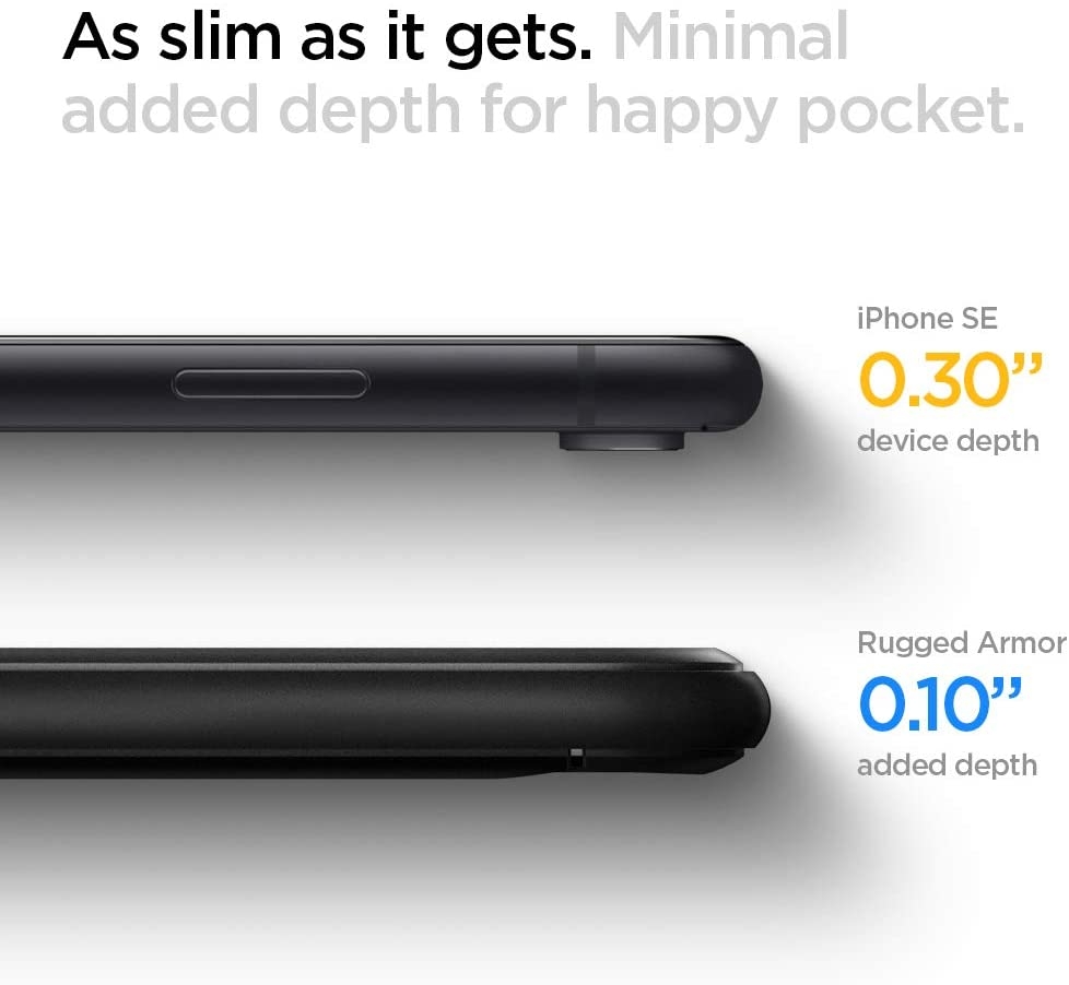 Η θήκη Rugged Armor της Spigen είναι κατασκευασμένη για να εφαρμόζει τέλεια στο iPhone SE 2022 / 2020 και να το προστατεύει από την καθημερινή χρήση, αποτελεσματικά, χωρίς να προσθέτει επιπλέον όγκο στη συσκευή σας.